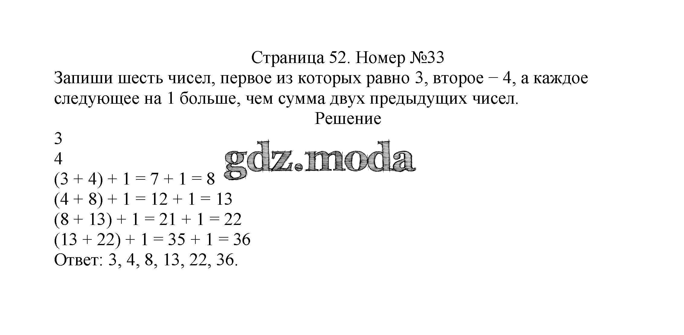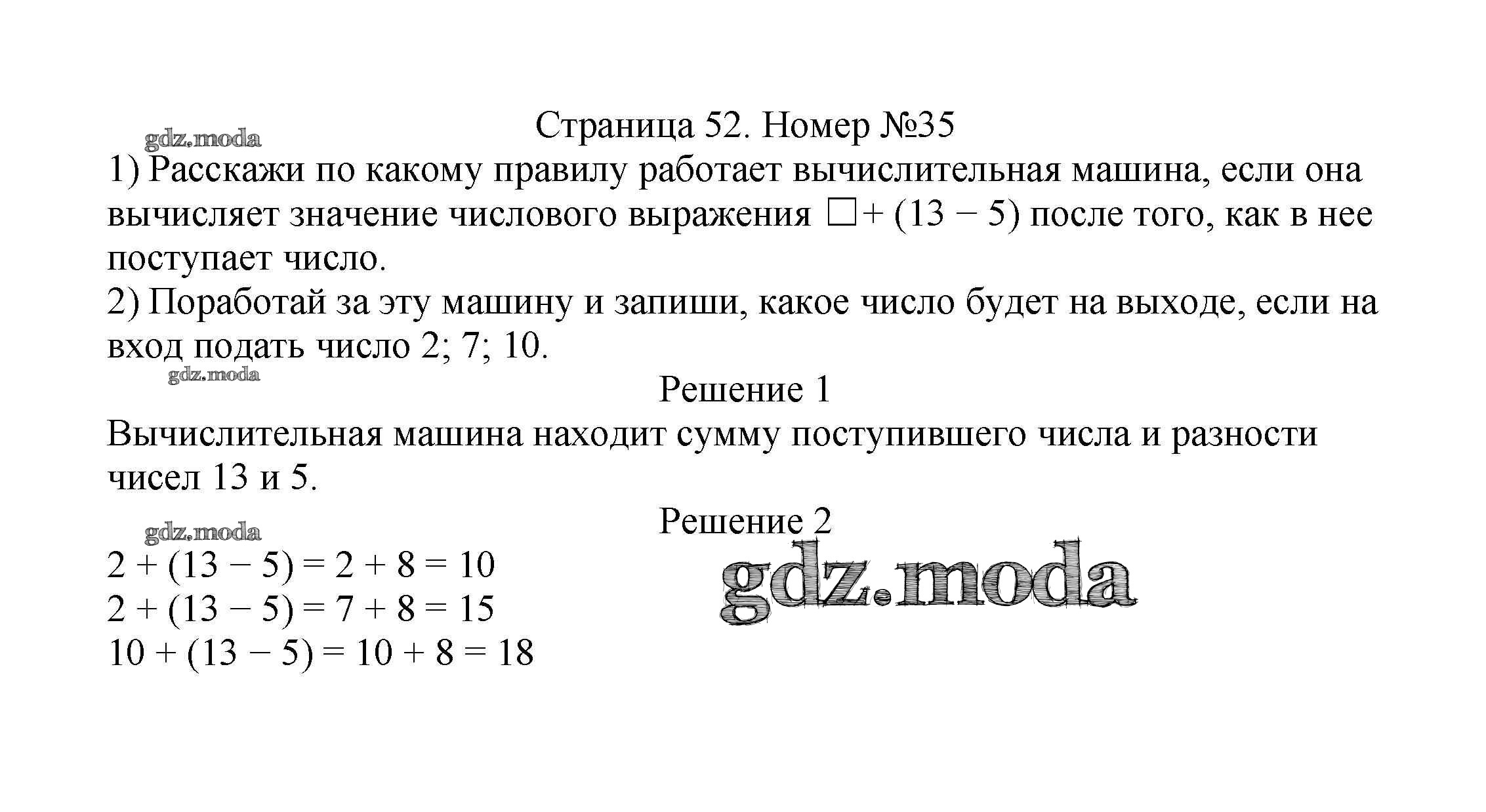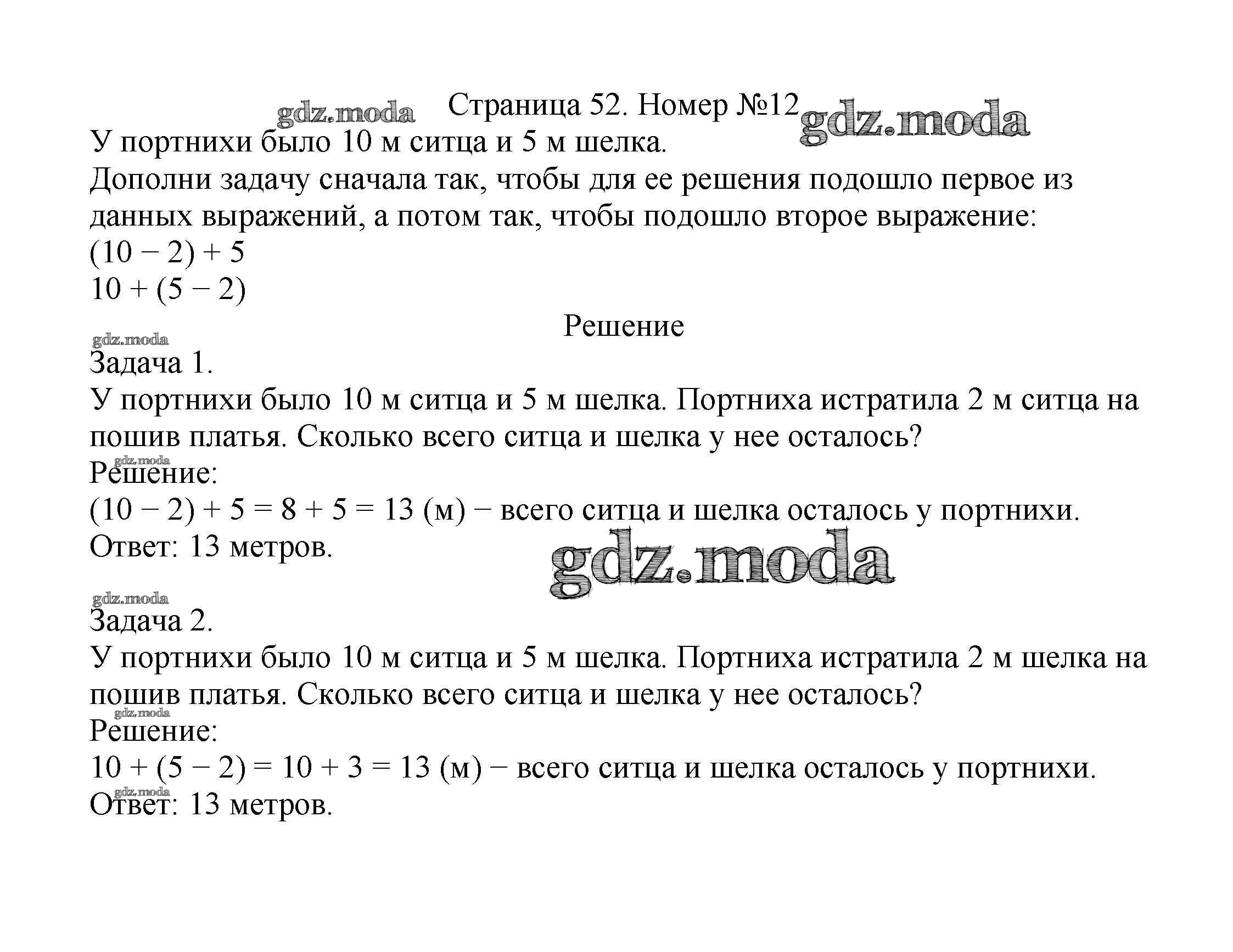 ОТВЕТ на задание № 52 Учебник по Математике 2 класс Моро Школа России