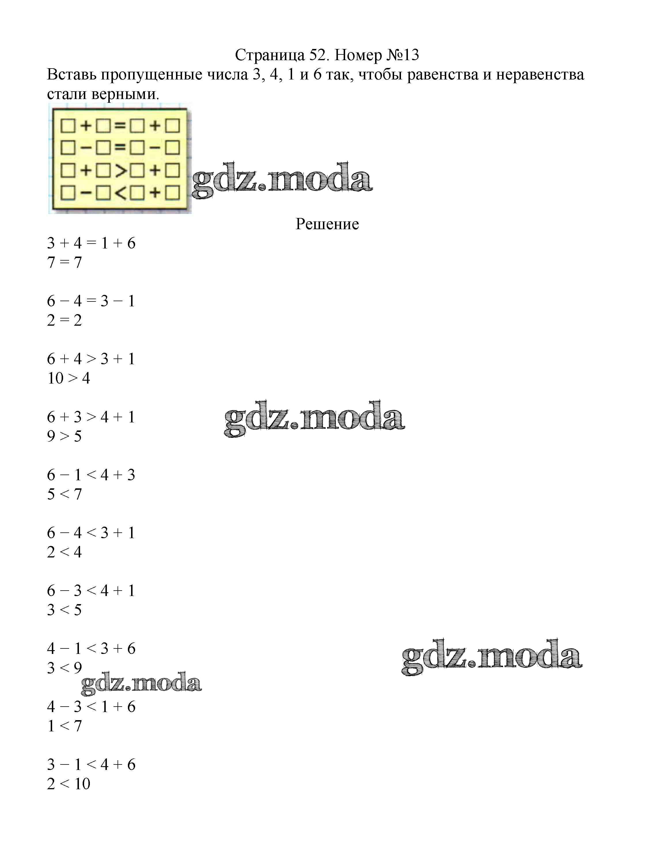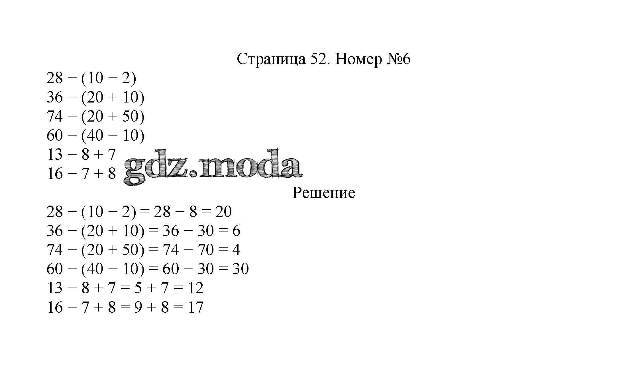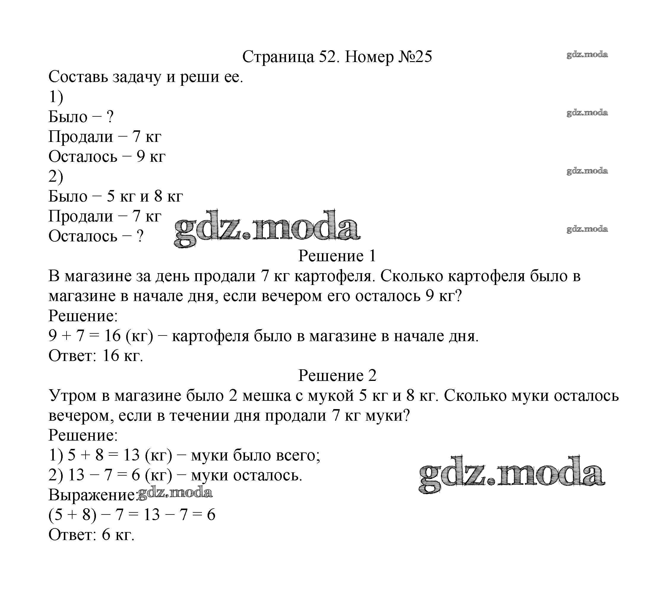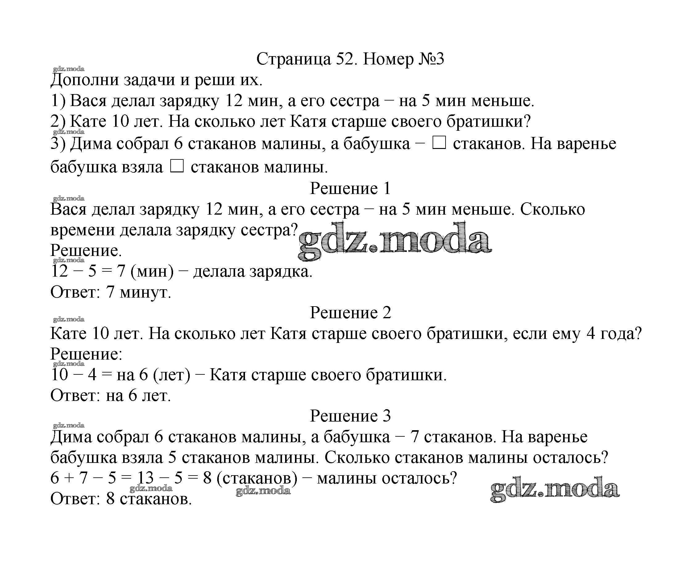 ОТВЕТ на задание № 52 Учебник по Математике 2 класс Моро Школа России