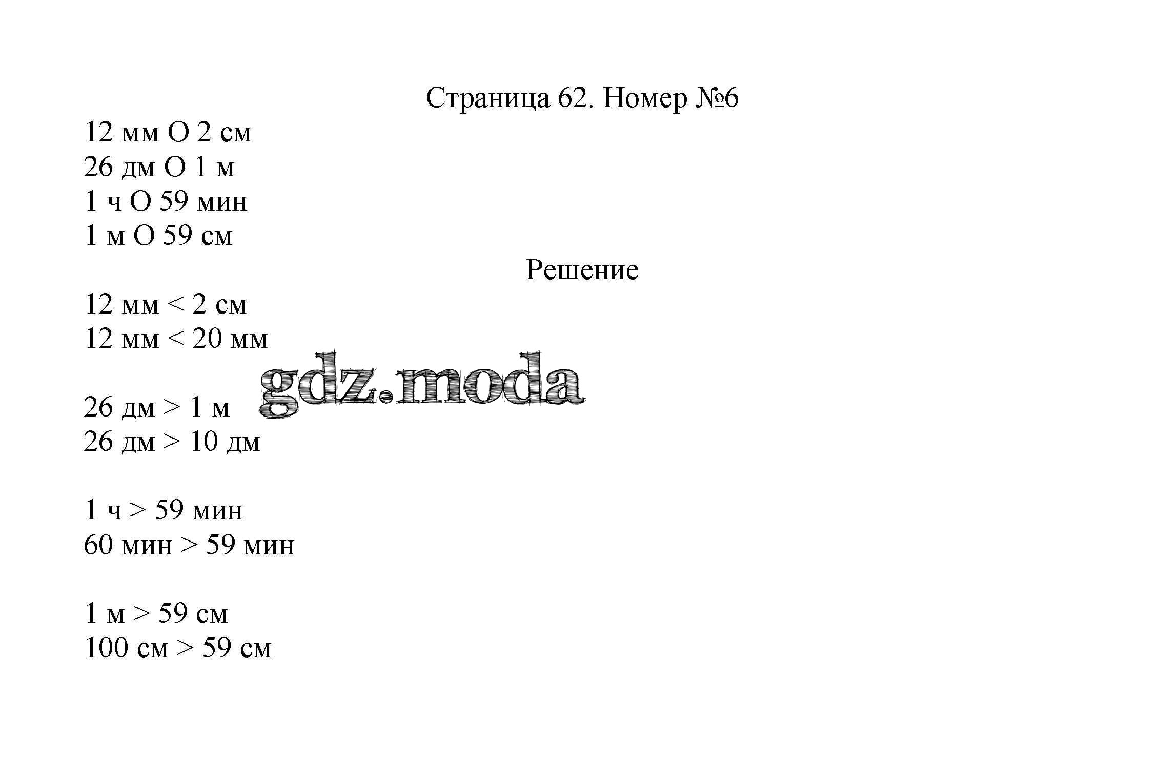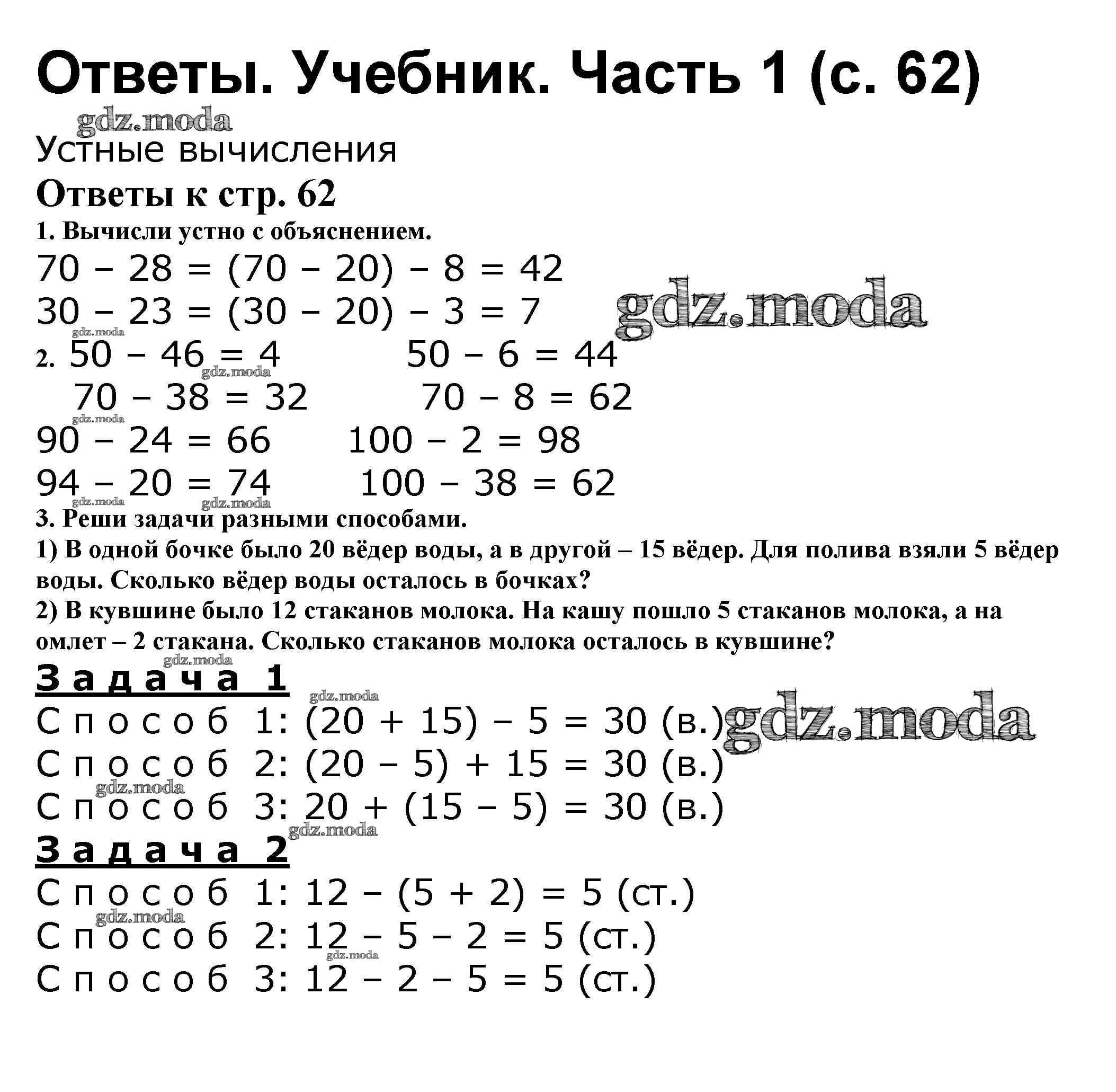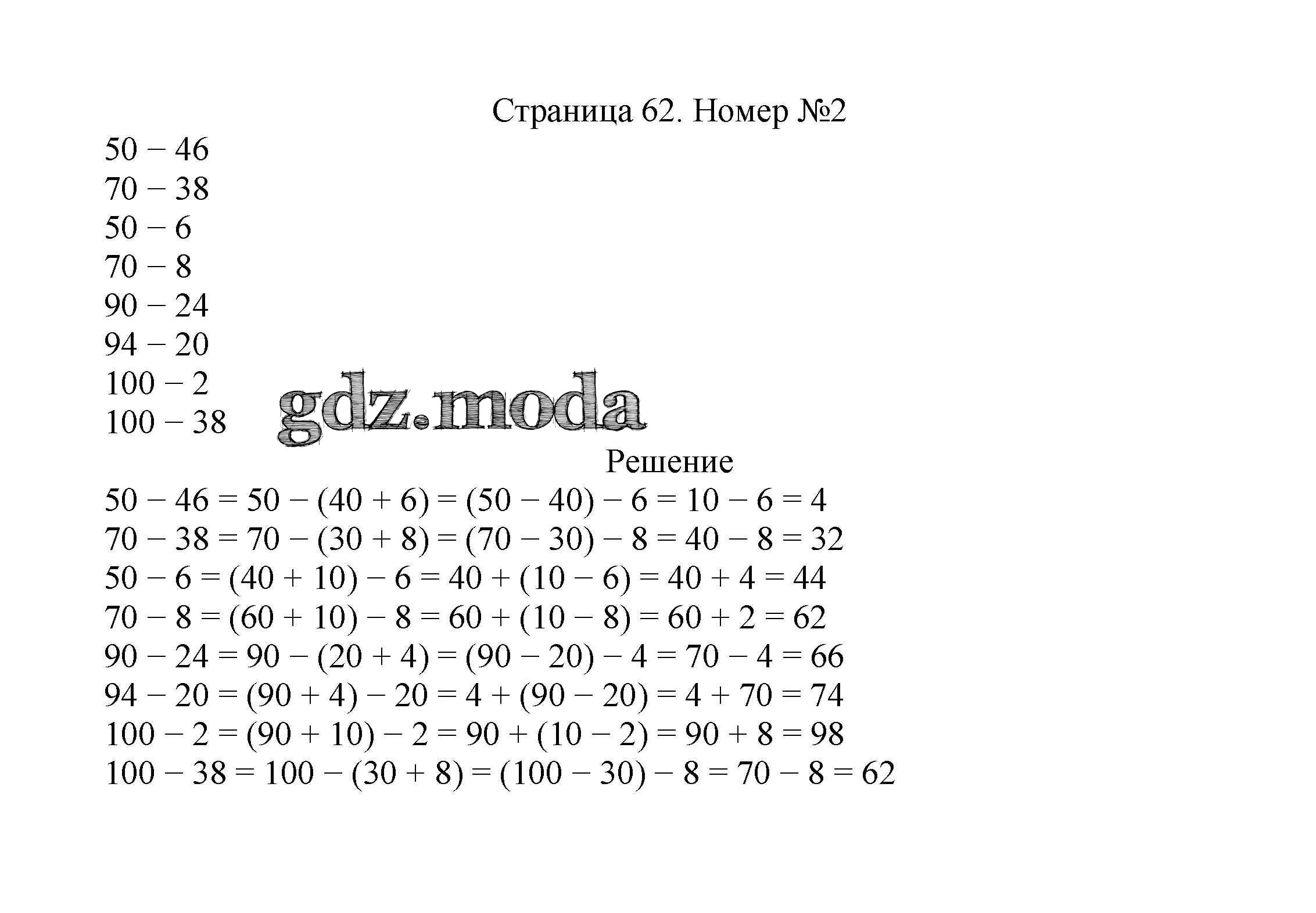 ОТВЕТ на задание № 62 Учебник по Математике 2 класс Моро Школа России