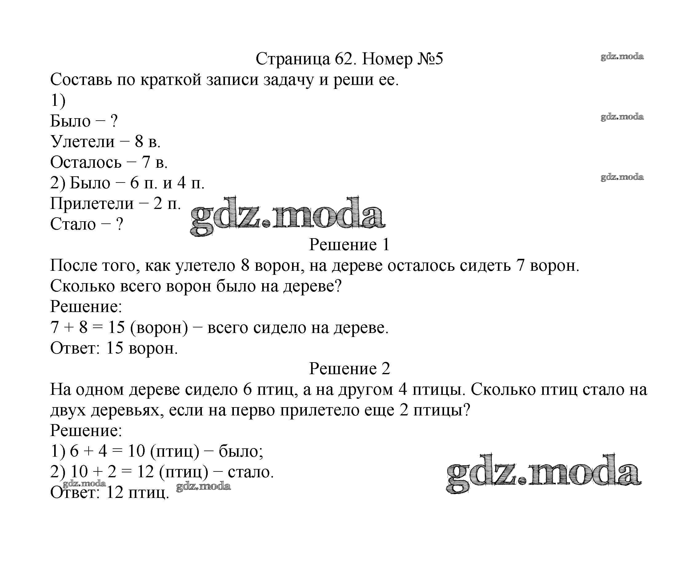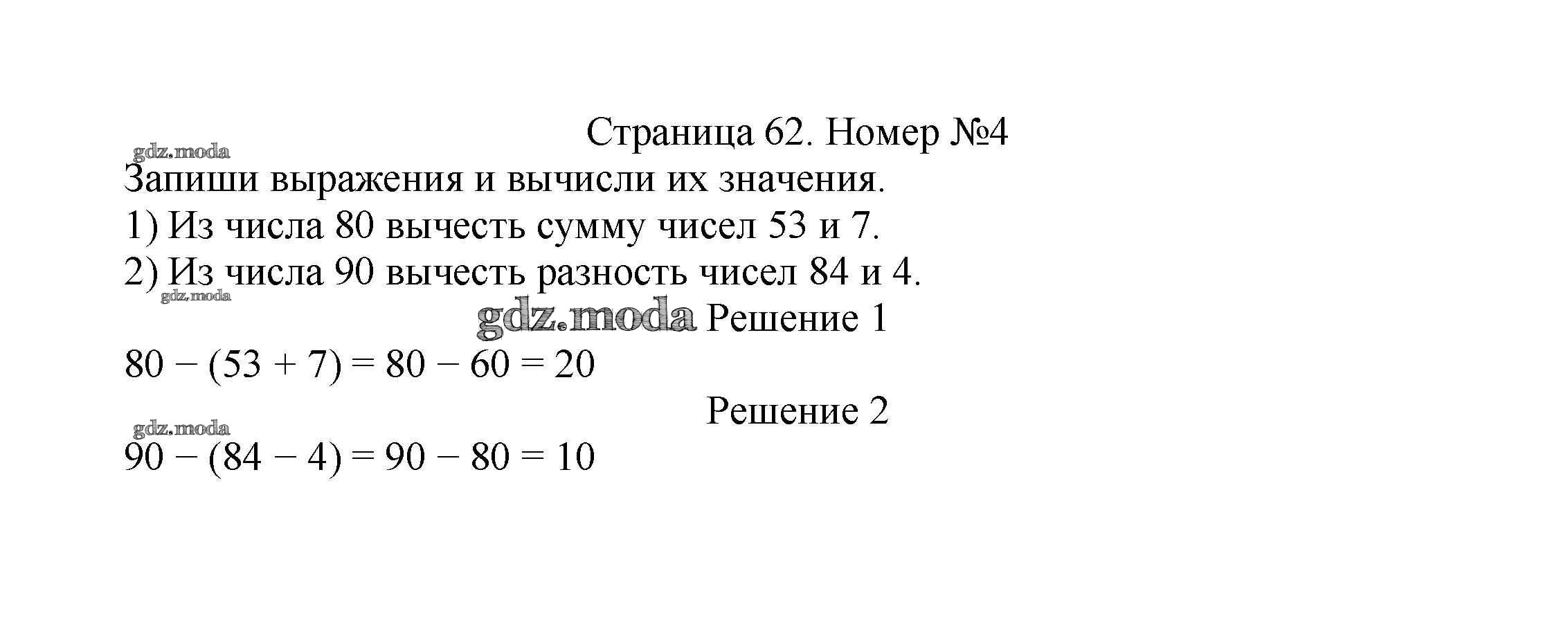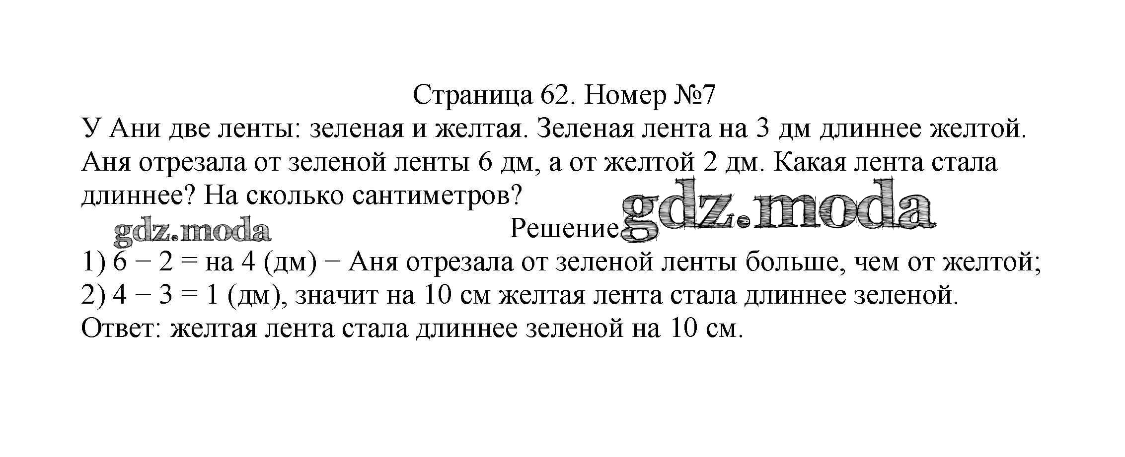 ОТВЕТ на задание № 62 Учебник по Математике 2 класс Моро Школа России