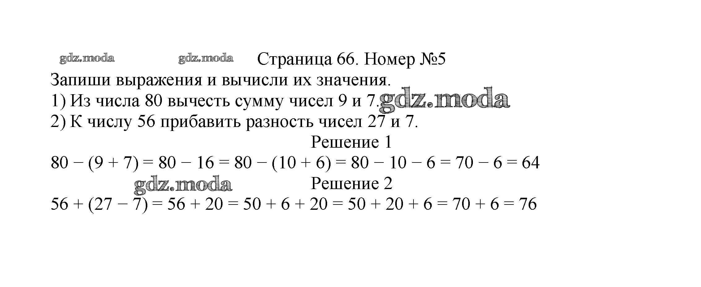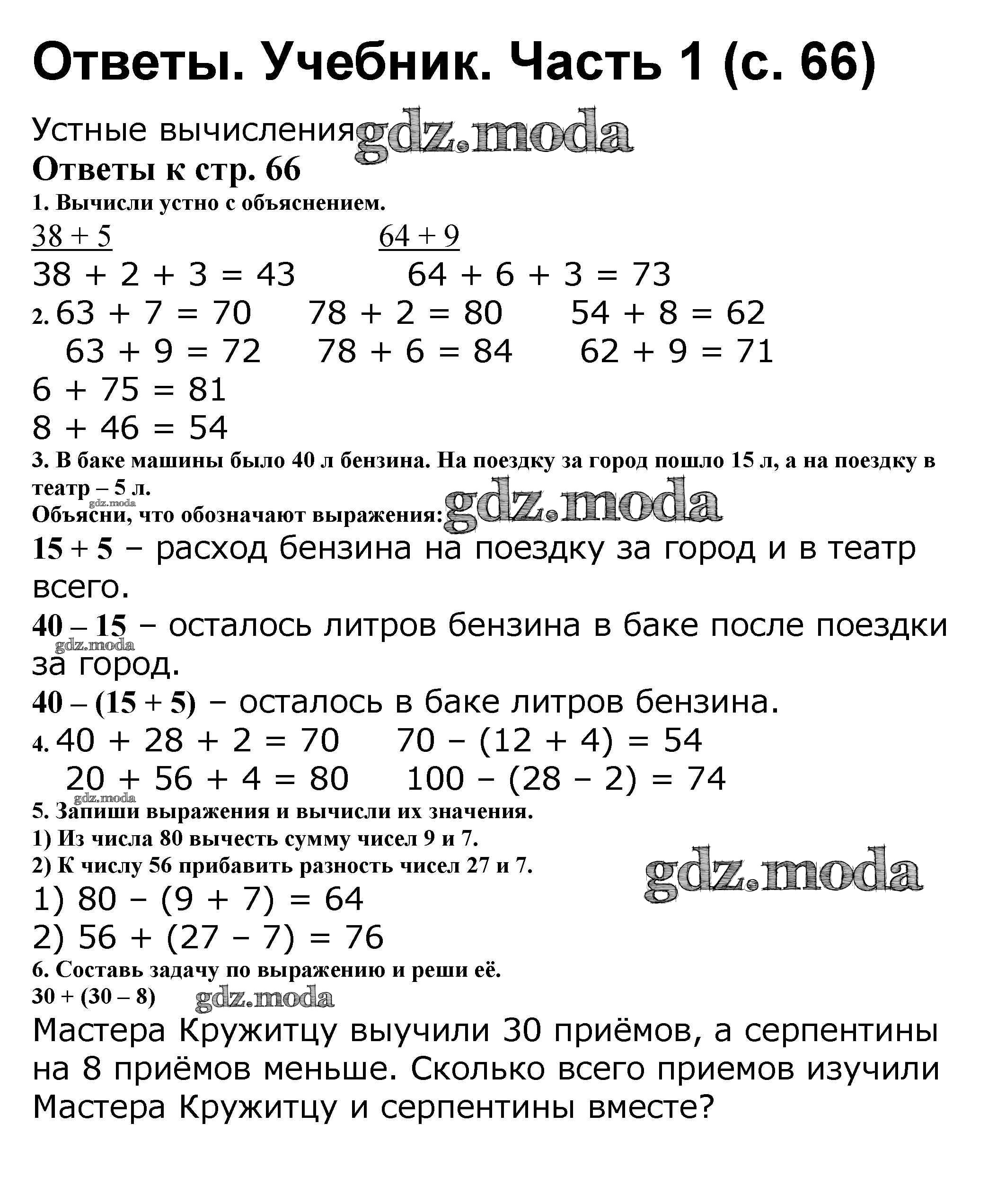 ОТВЕТ на задание № 66 Учебник по Математике 2 класс Моро Школа России
