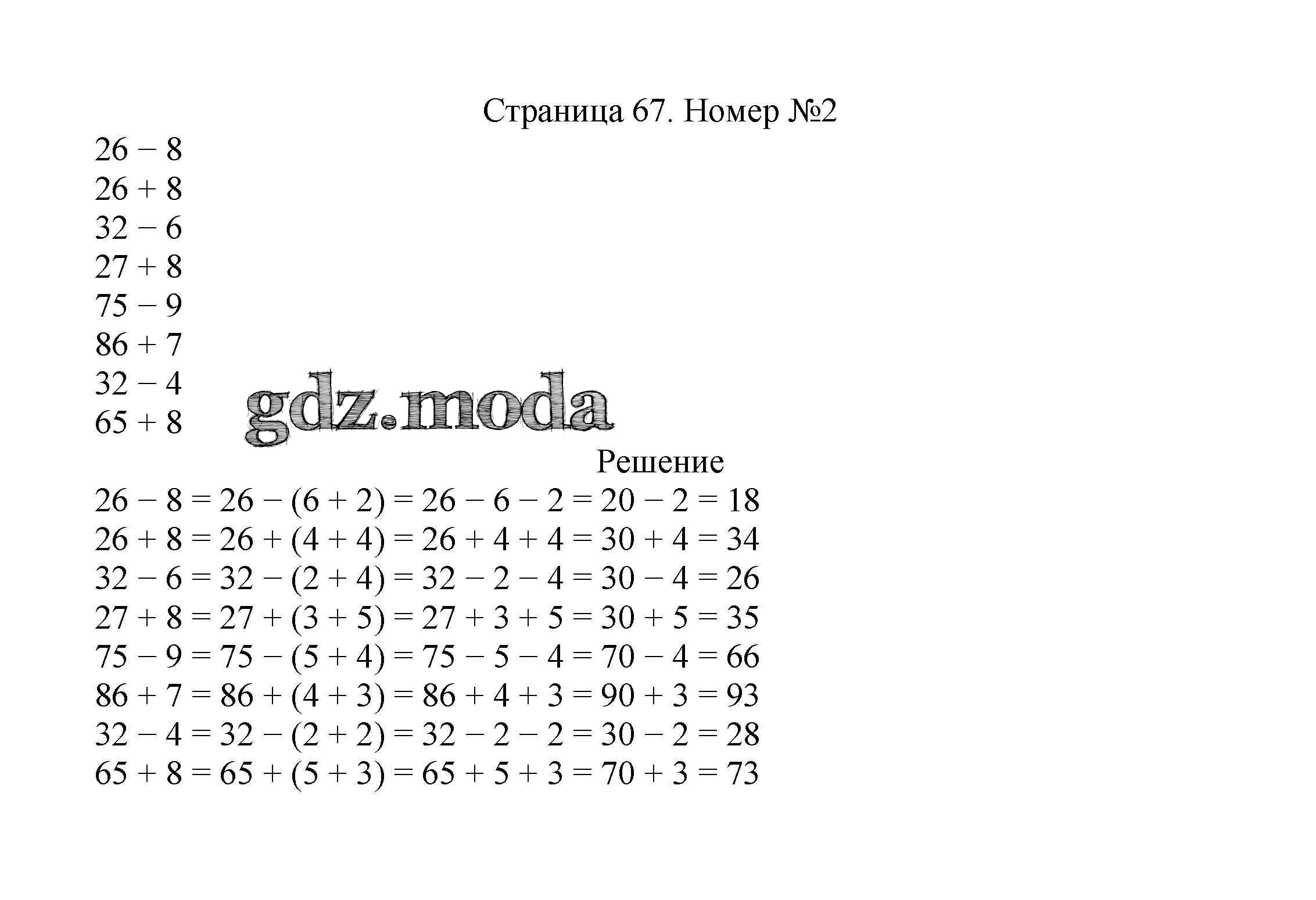 ОТВЕТ на задание № 67 Учебник по Математике 2 класс Моро Школа России