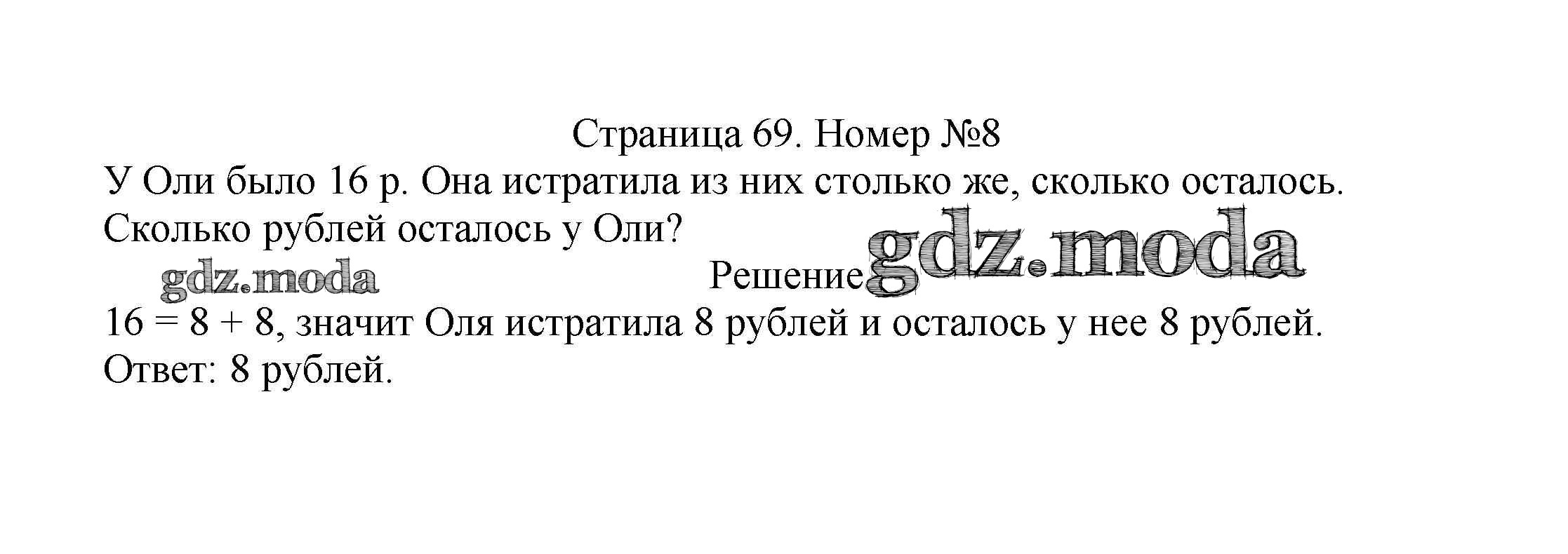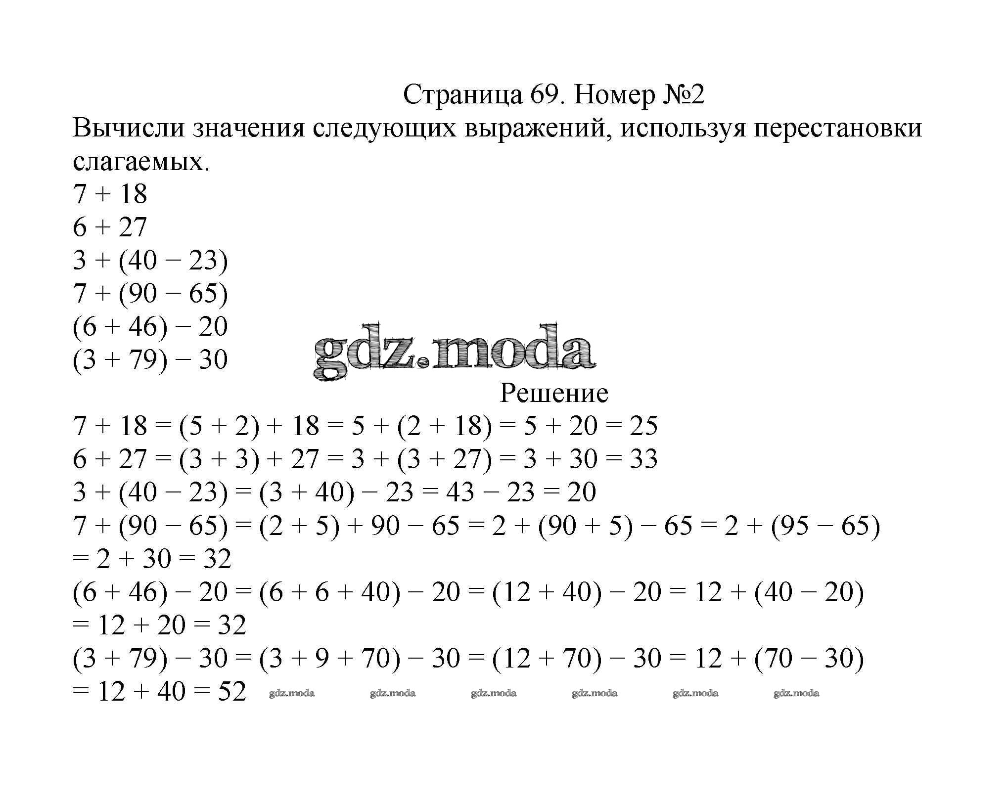 ОТВЕТ на задание № 69 Учебник по Математике 2 класс Моро Школа России