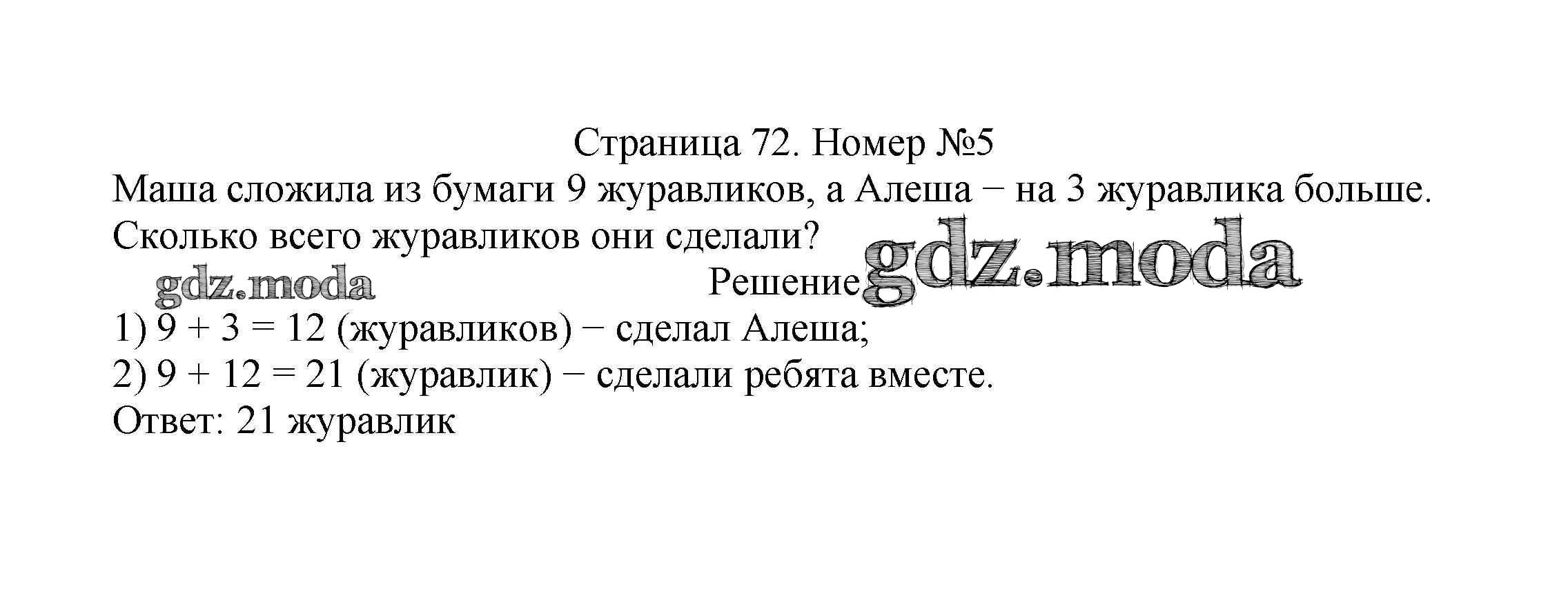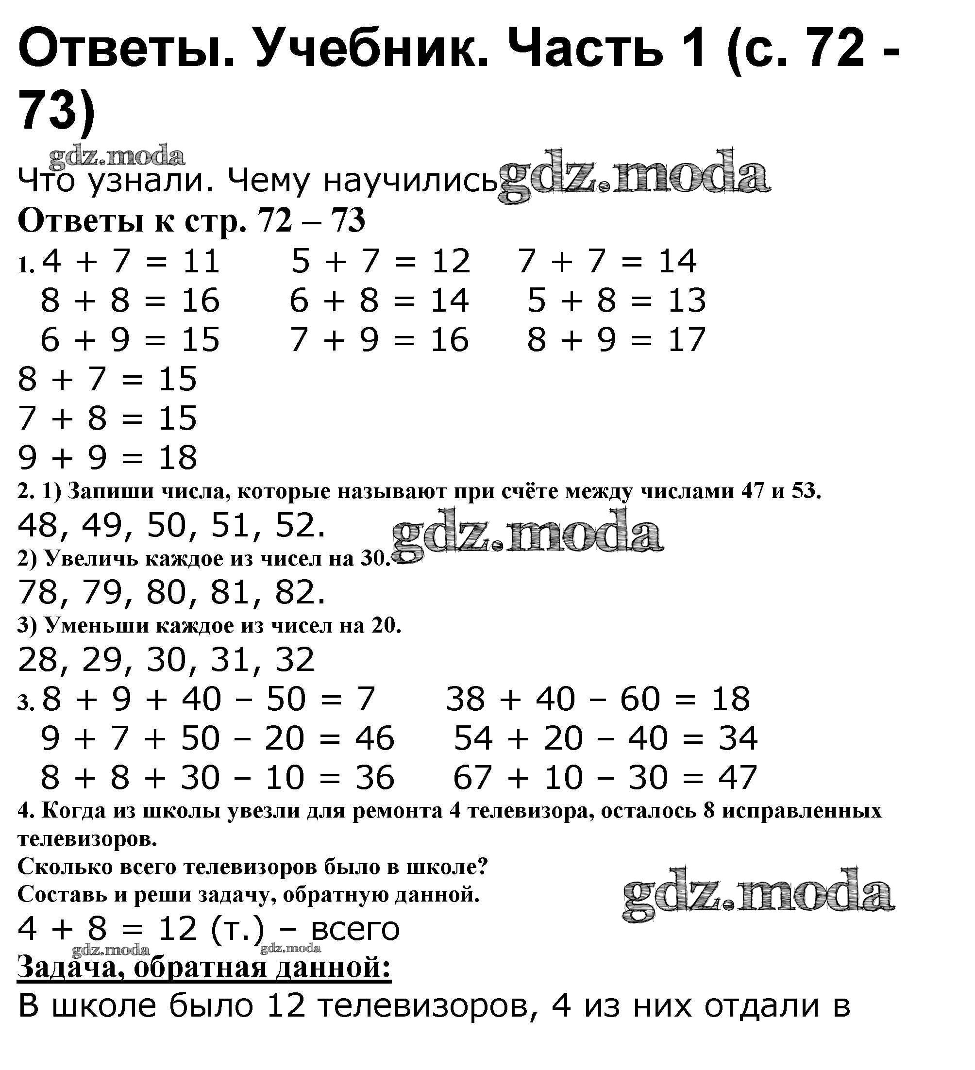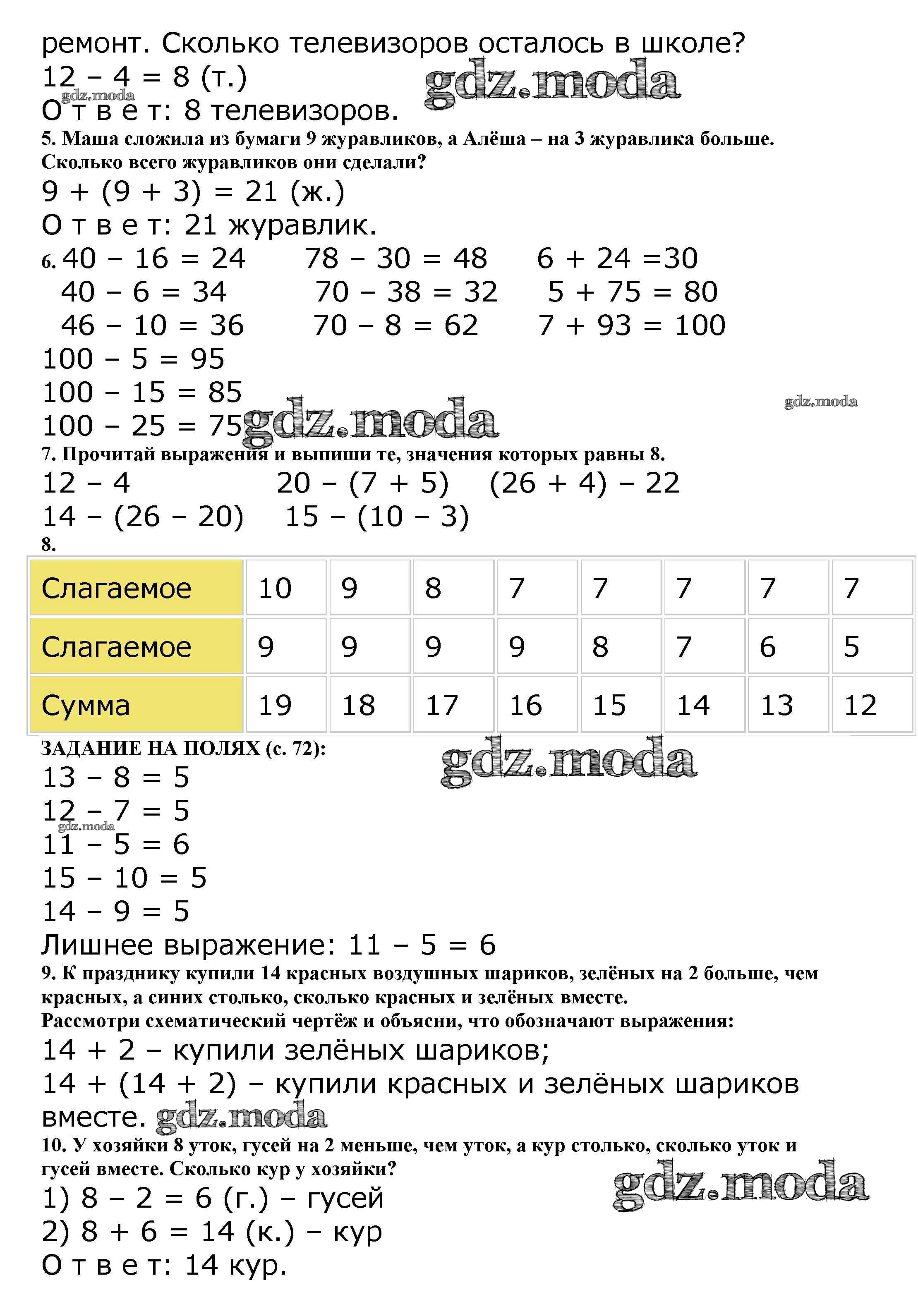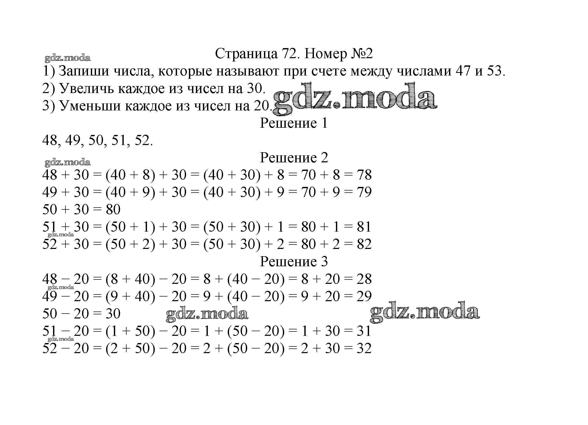ОТВЕТ на задание № 72 Учебник по Математике 2 класс Моро Школа России