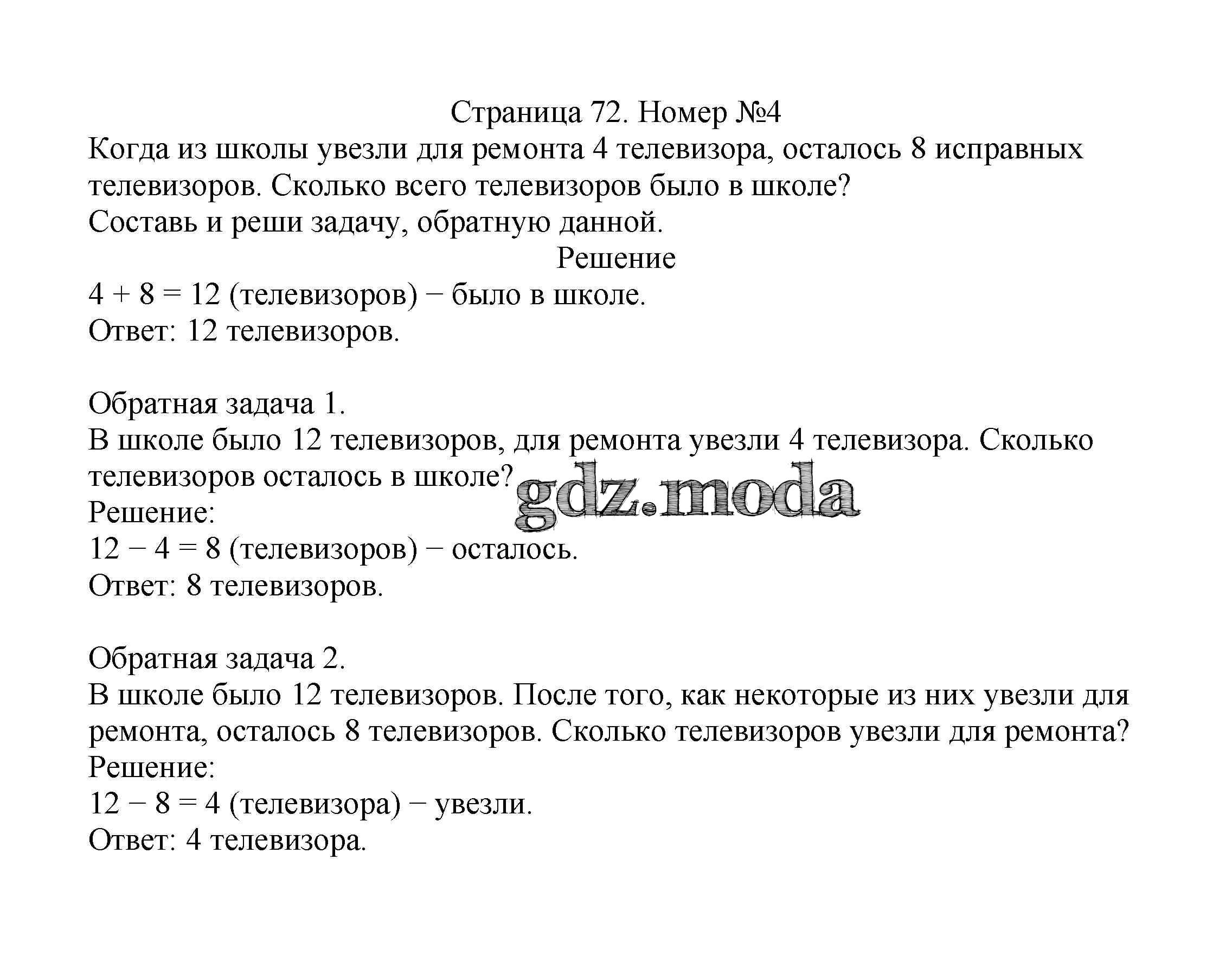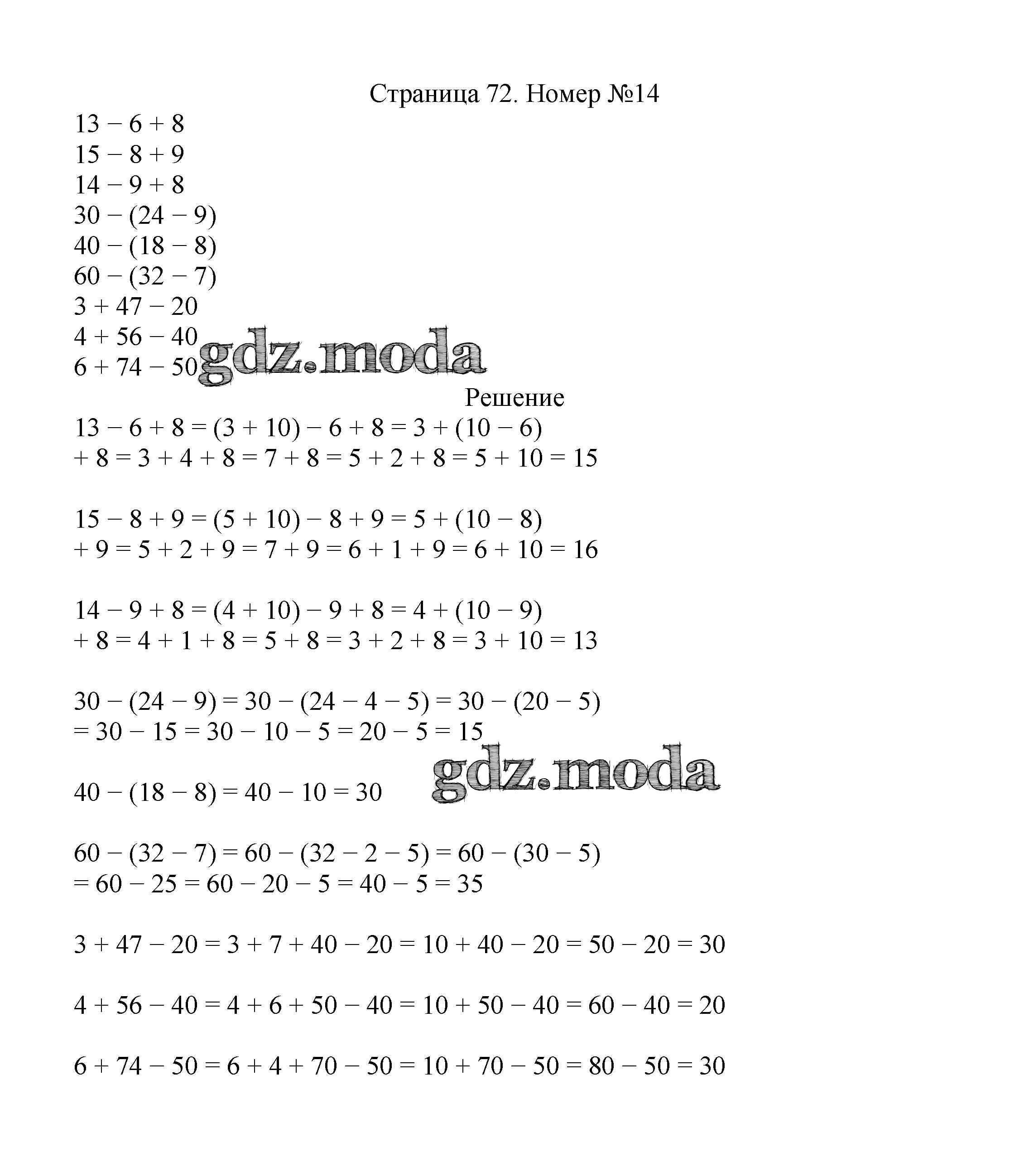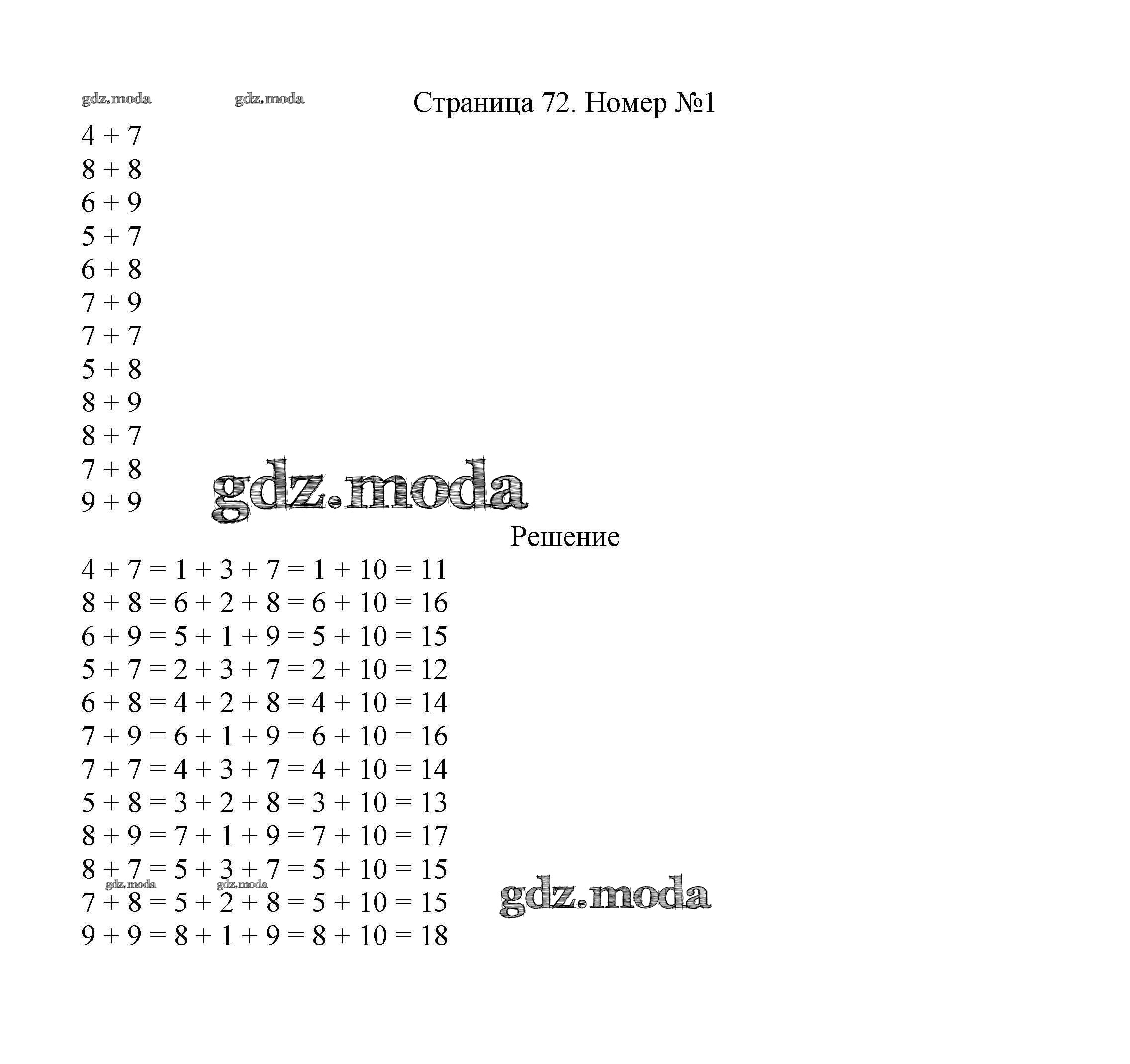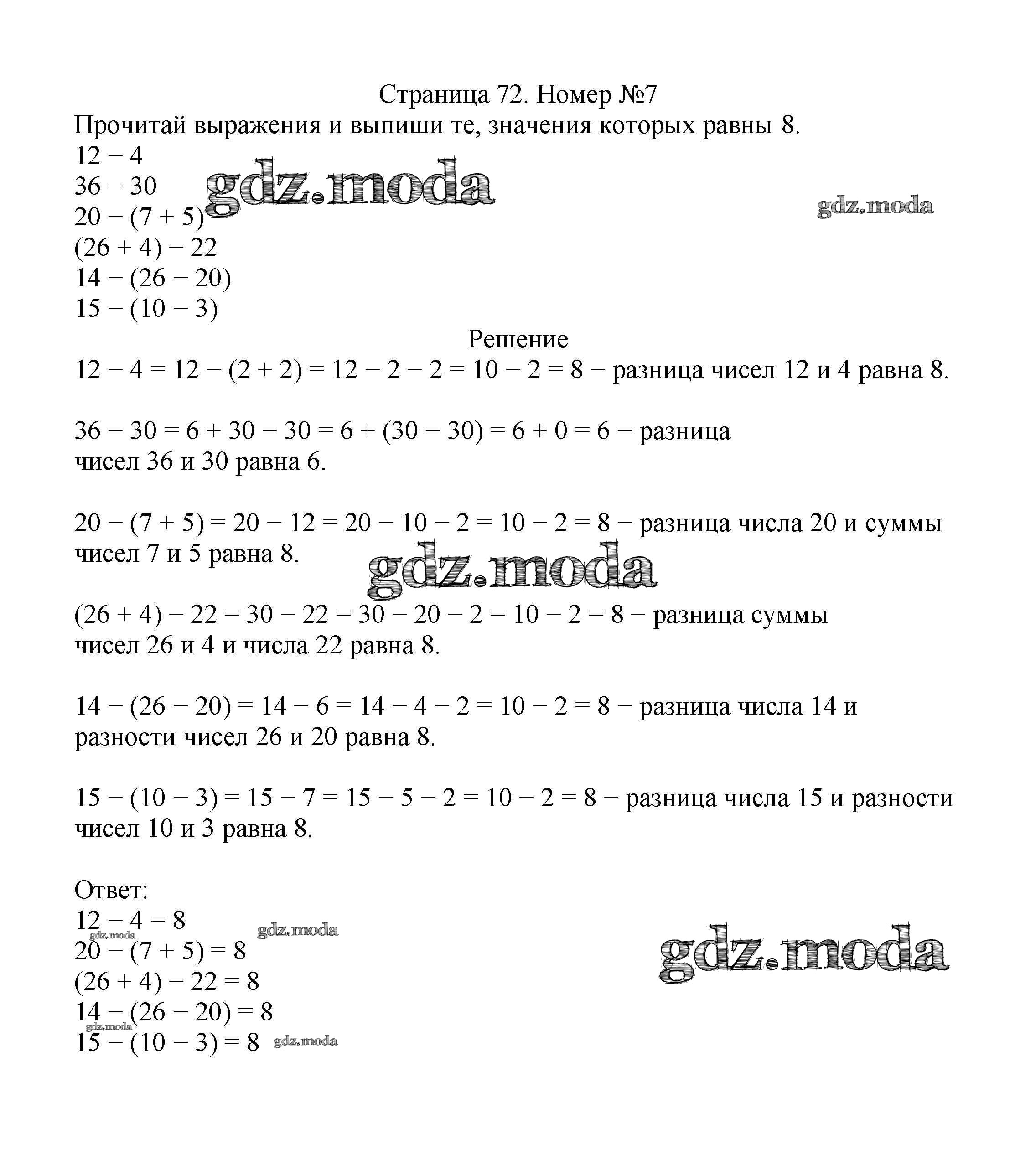 ОТВЕТ на задание № 72 Учебник по Математике 2 класс Моро Школа России