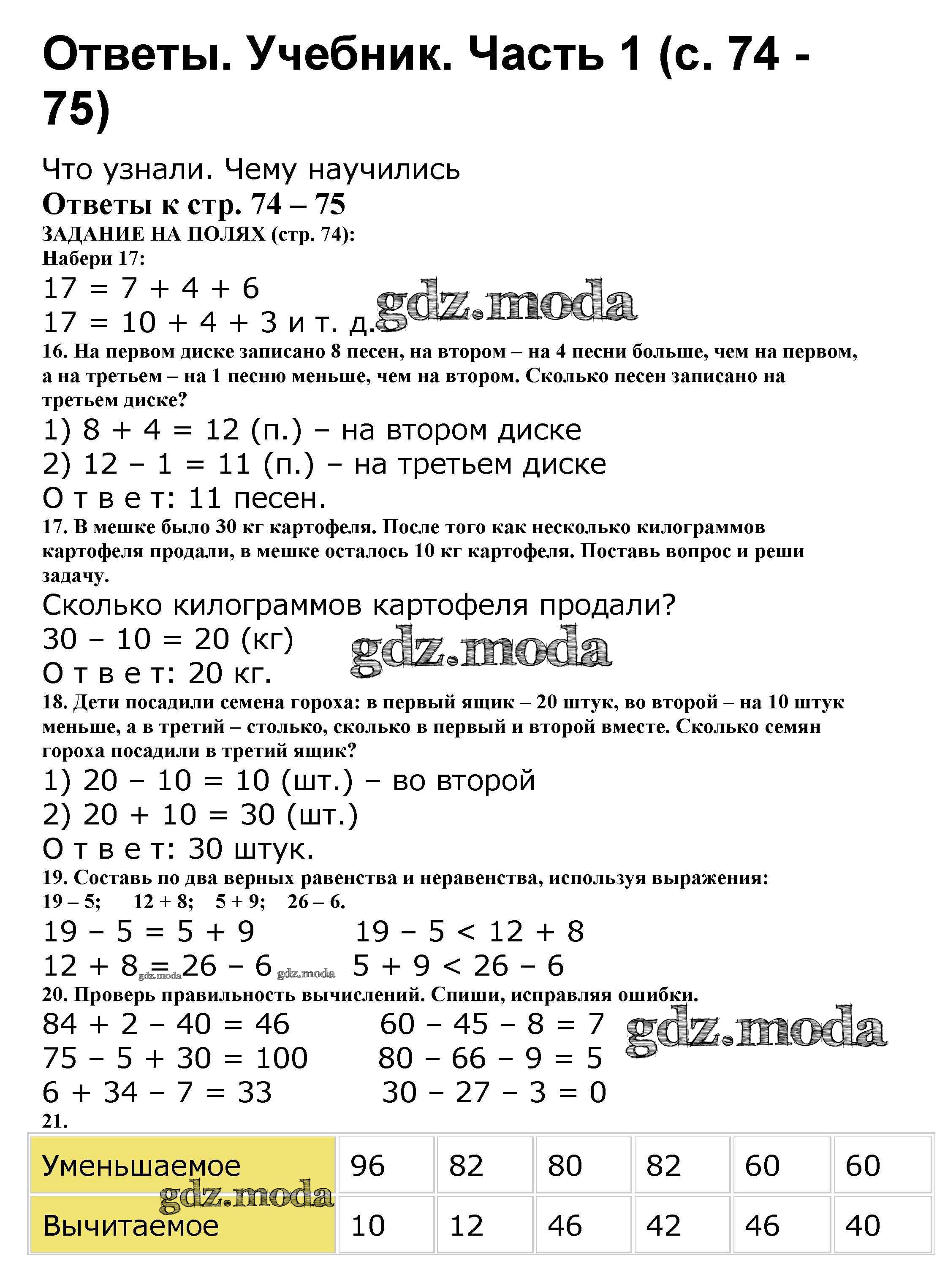 ОТВЕТ на задание № 74 Учебник по Математике 2 класс Моро Школа России