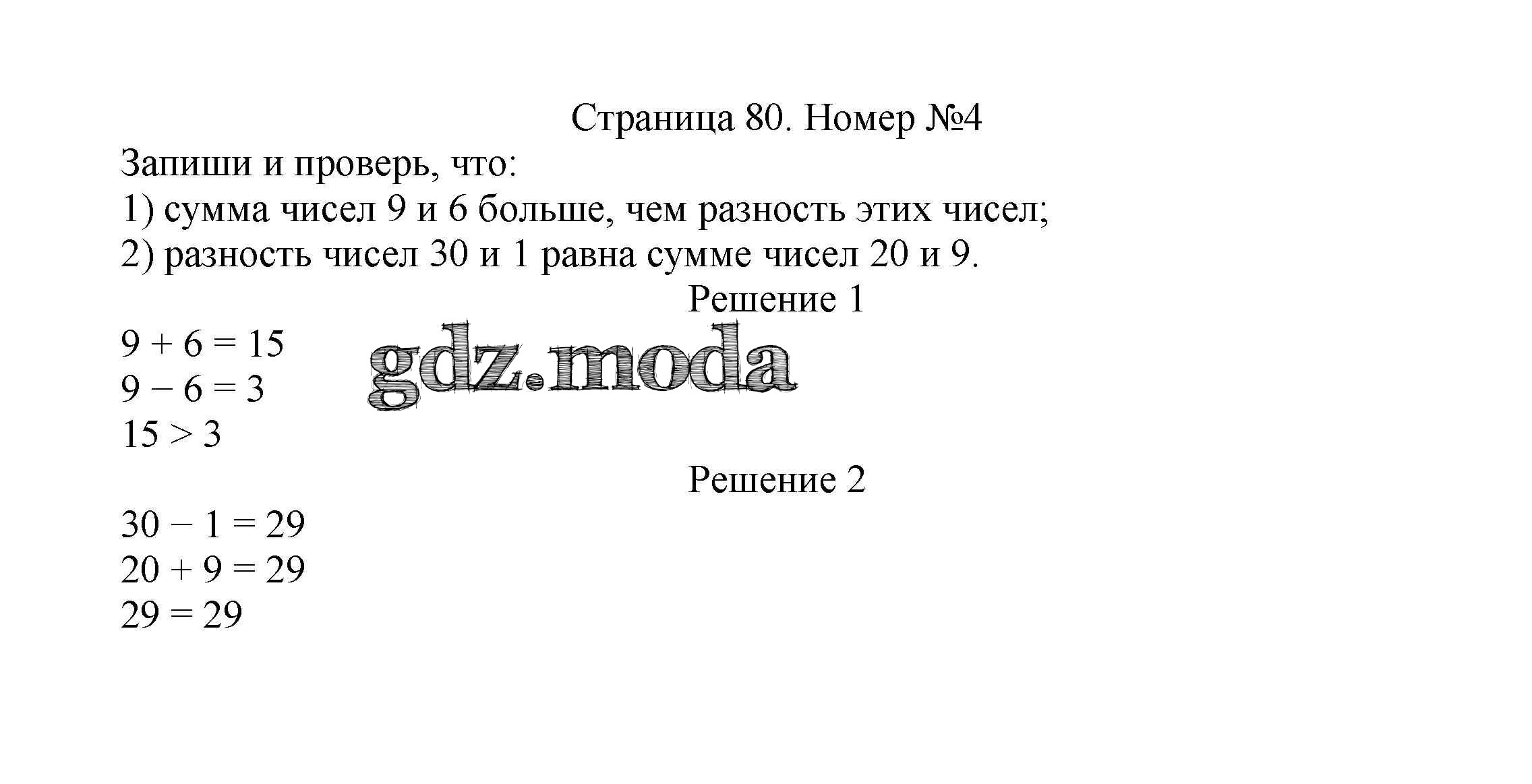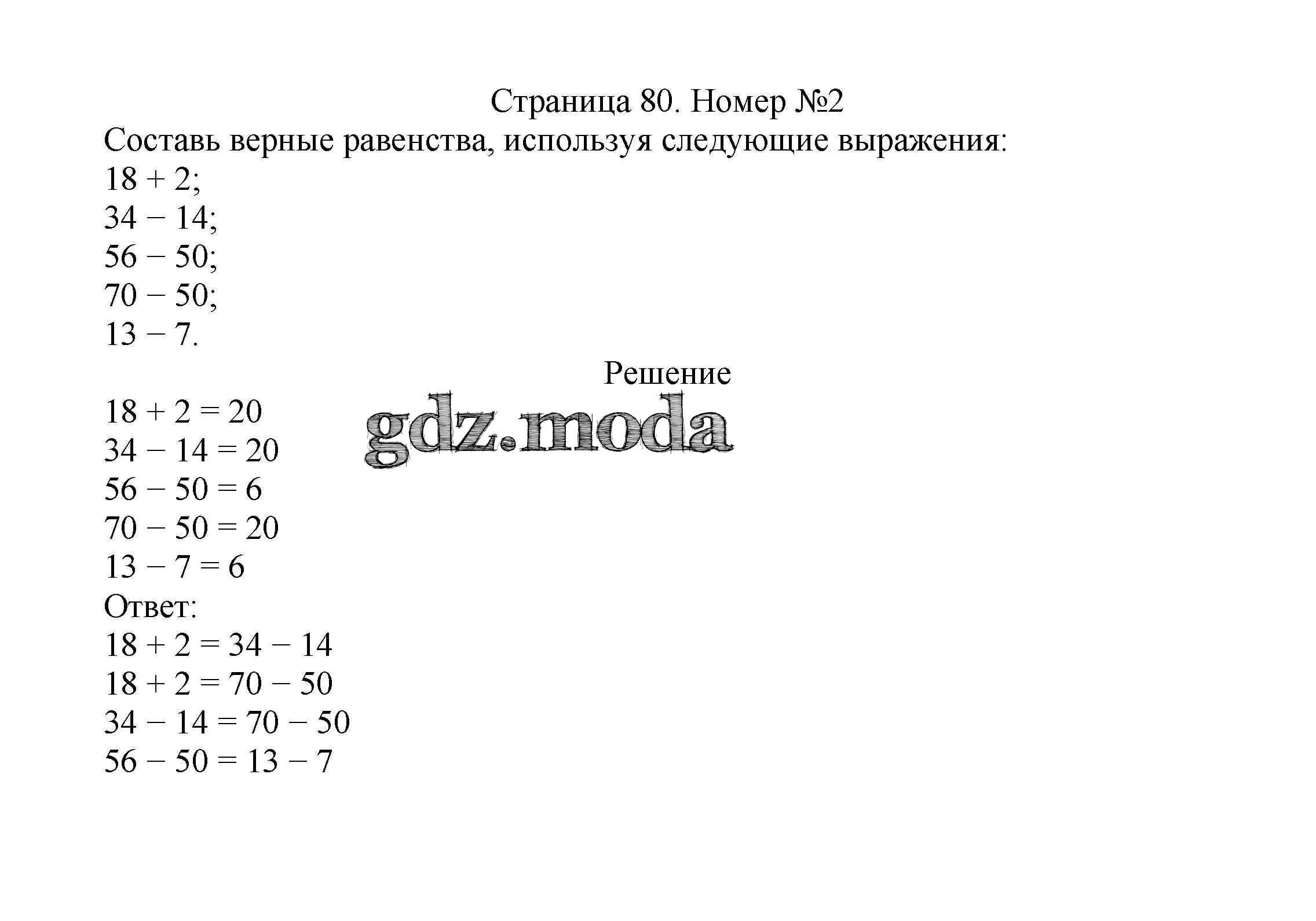ОТВЕТ на задание № 80 Учебник по Математике 2 класс Моро Школа России