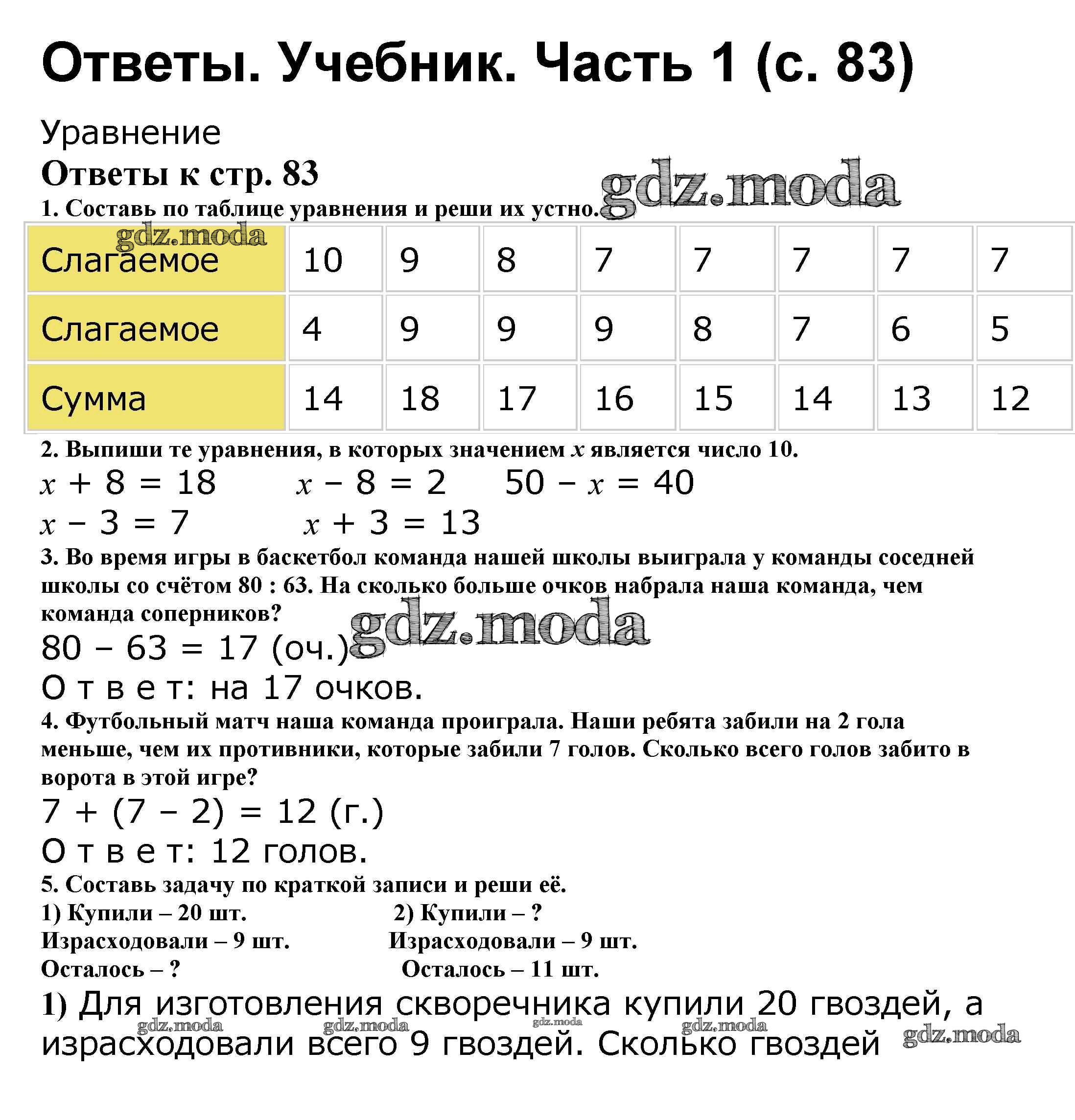 ОТВЕТ на задание № 83 Учебник по Математике 2 класс Моро Школа России