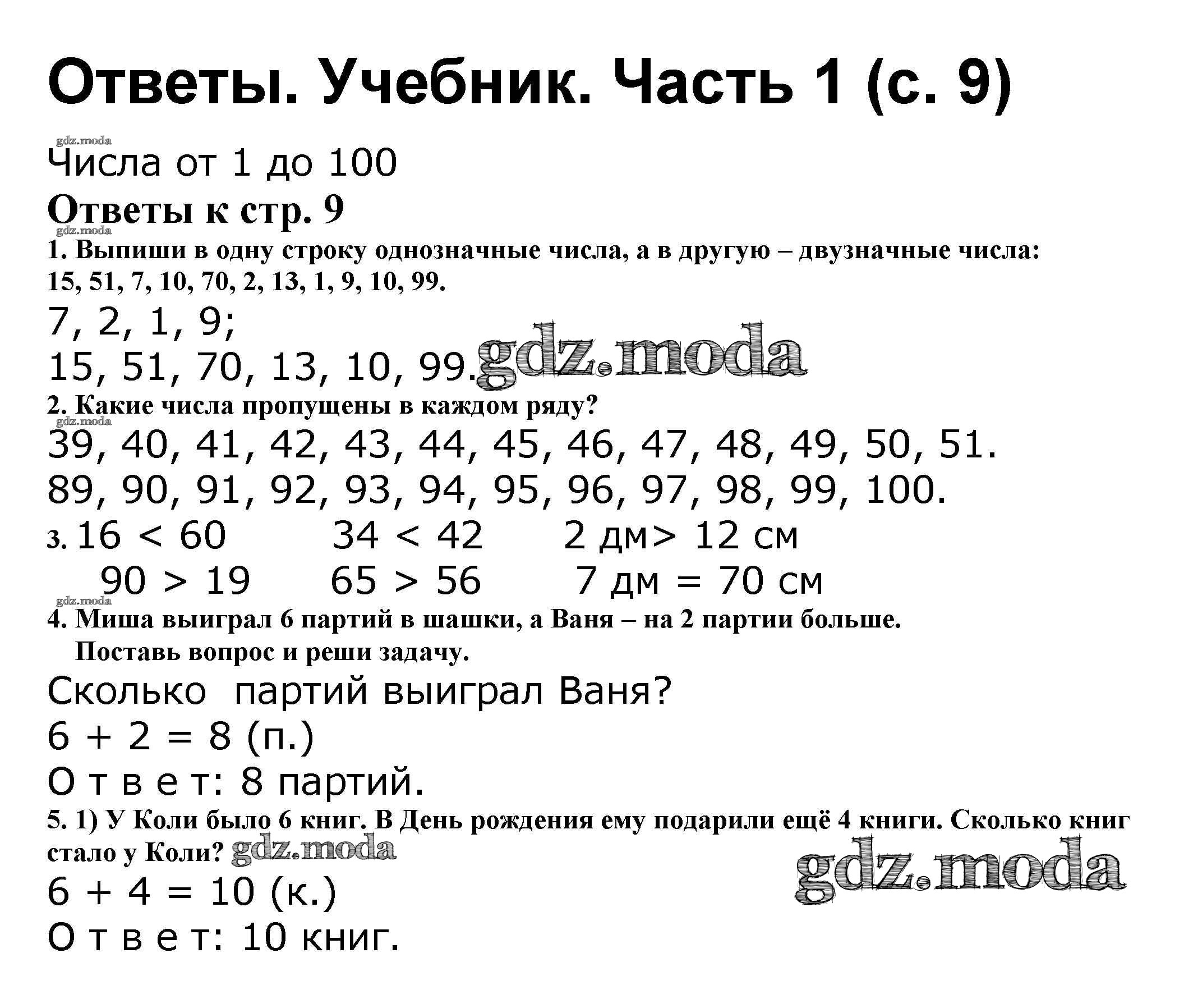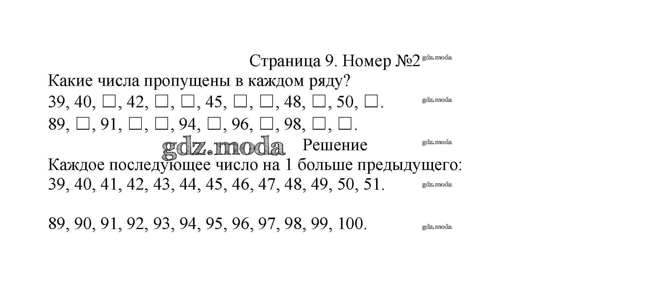 ОТВЕТ на задание № 9 Учебник по Математике 2 класс Моро Школа России