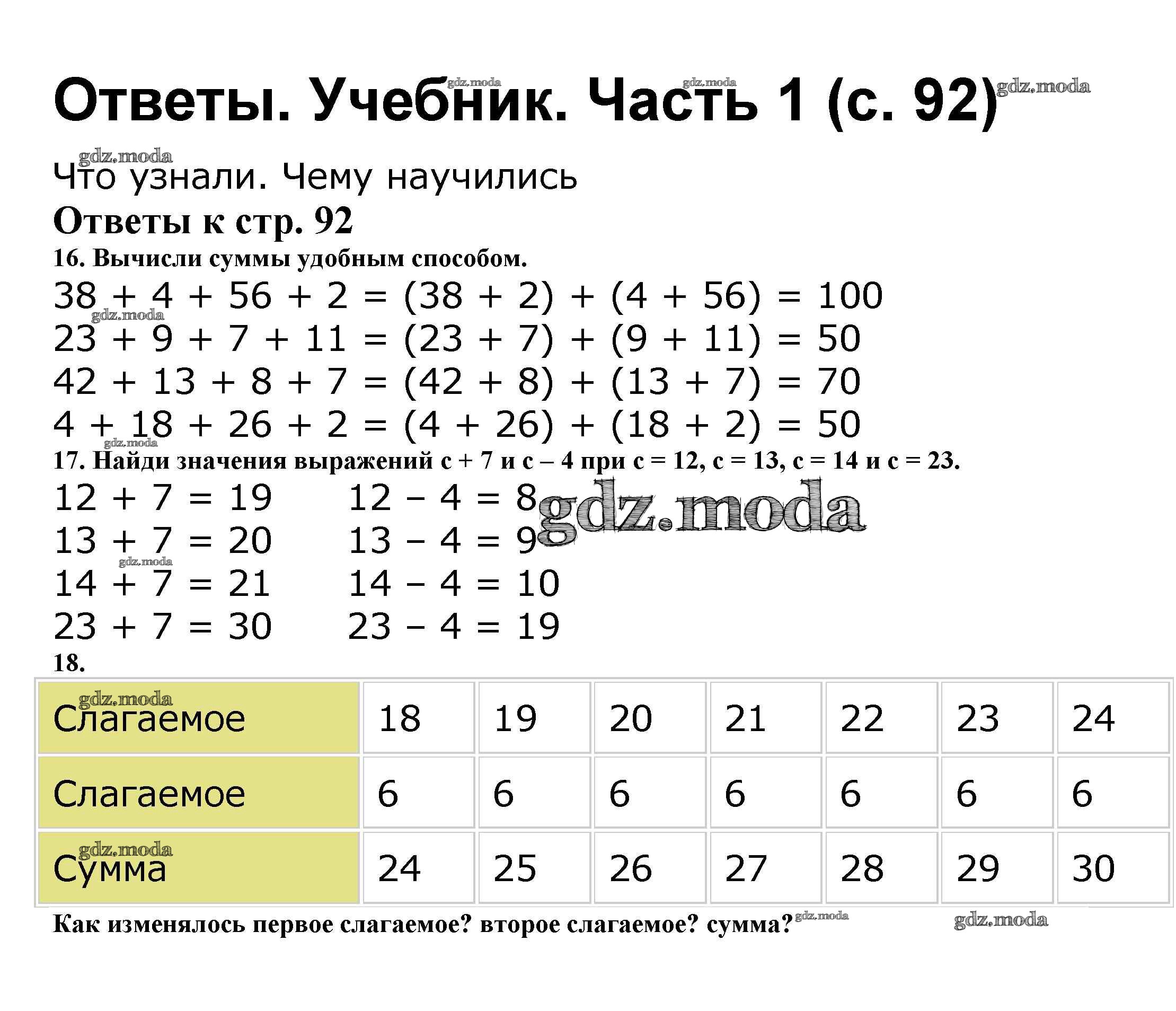 ОТВЕТ на задание № 92 Учебник по Математике 2 класс Моро Школа России