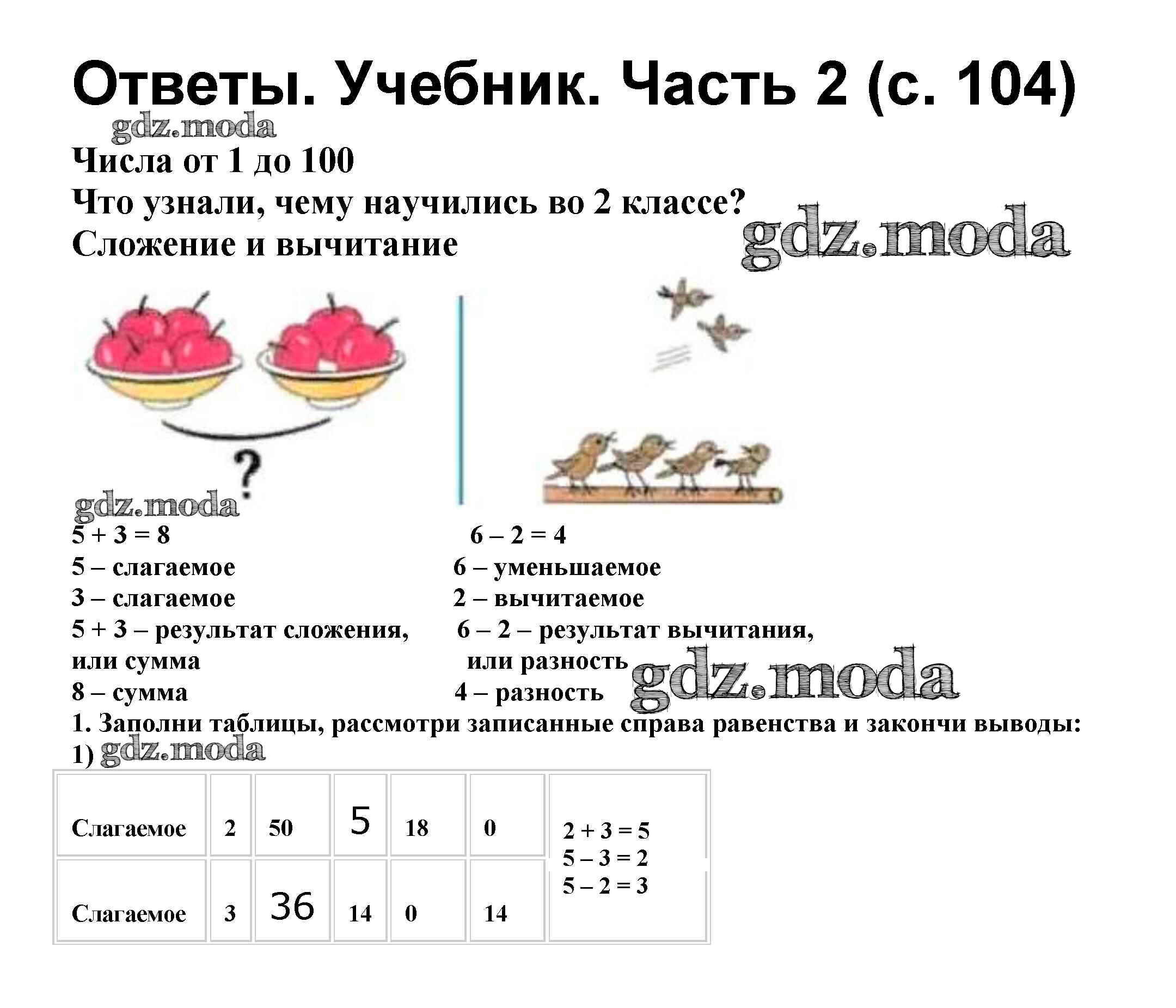 ОТВЕТ на задание № 104 Учебник по Математике 2 класс Моро Школа России
