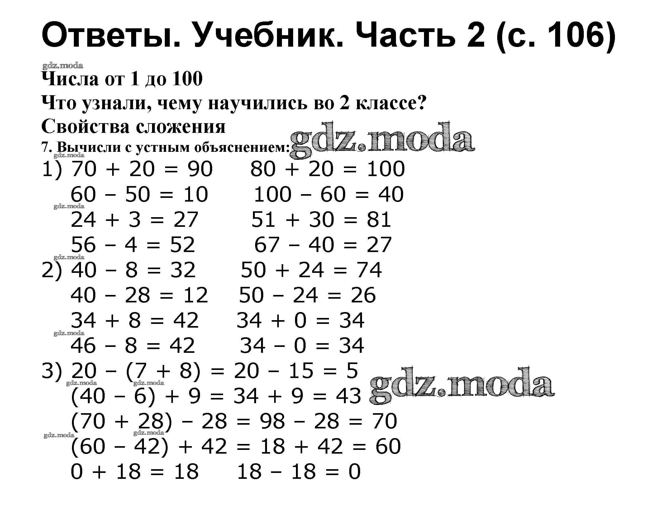 ОТВЕТ на задание № 106 Учебник по Математике 2 класс Моро Школа России