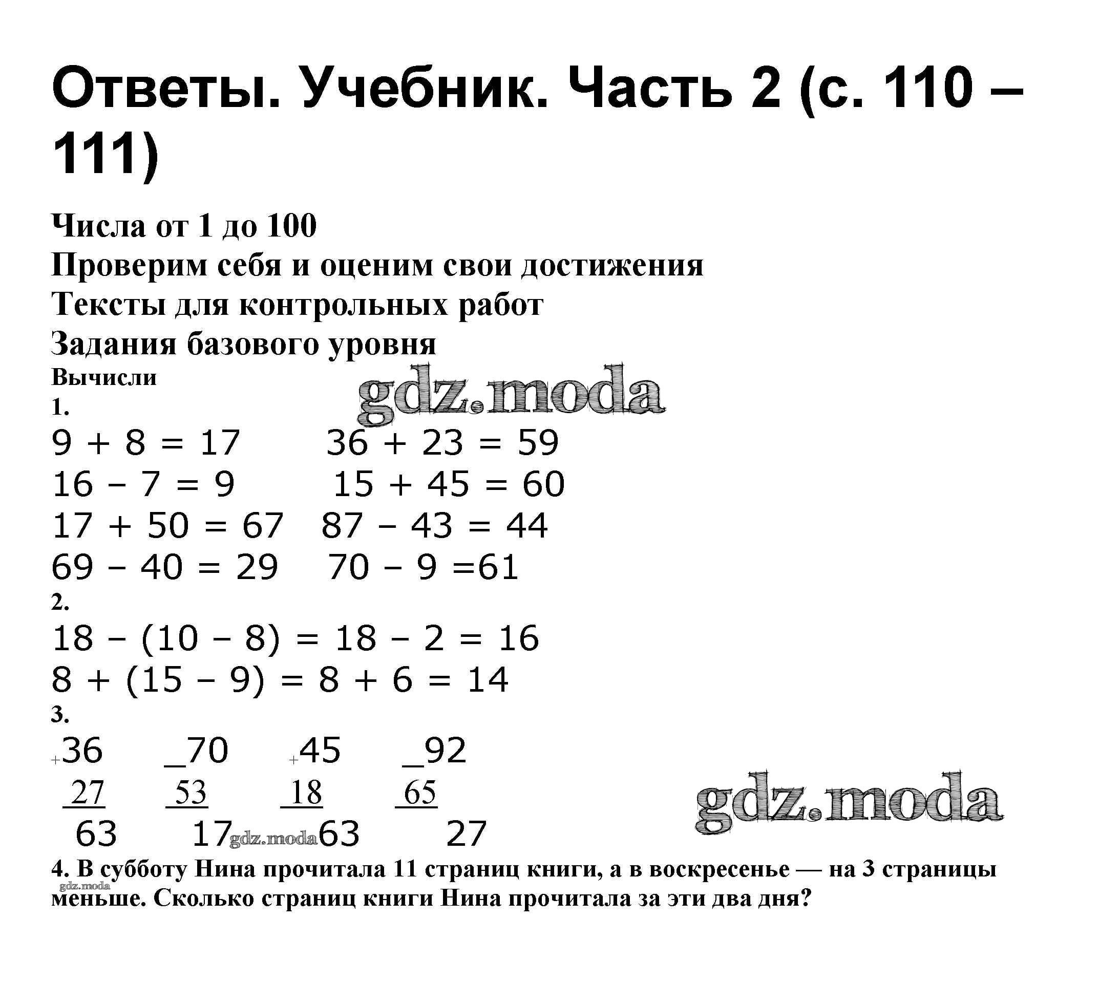 ОТВЕТ на задание № 110 Учебник по Математике 2 класс Моро Школа России