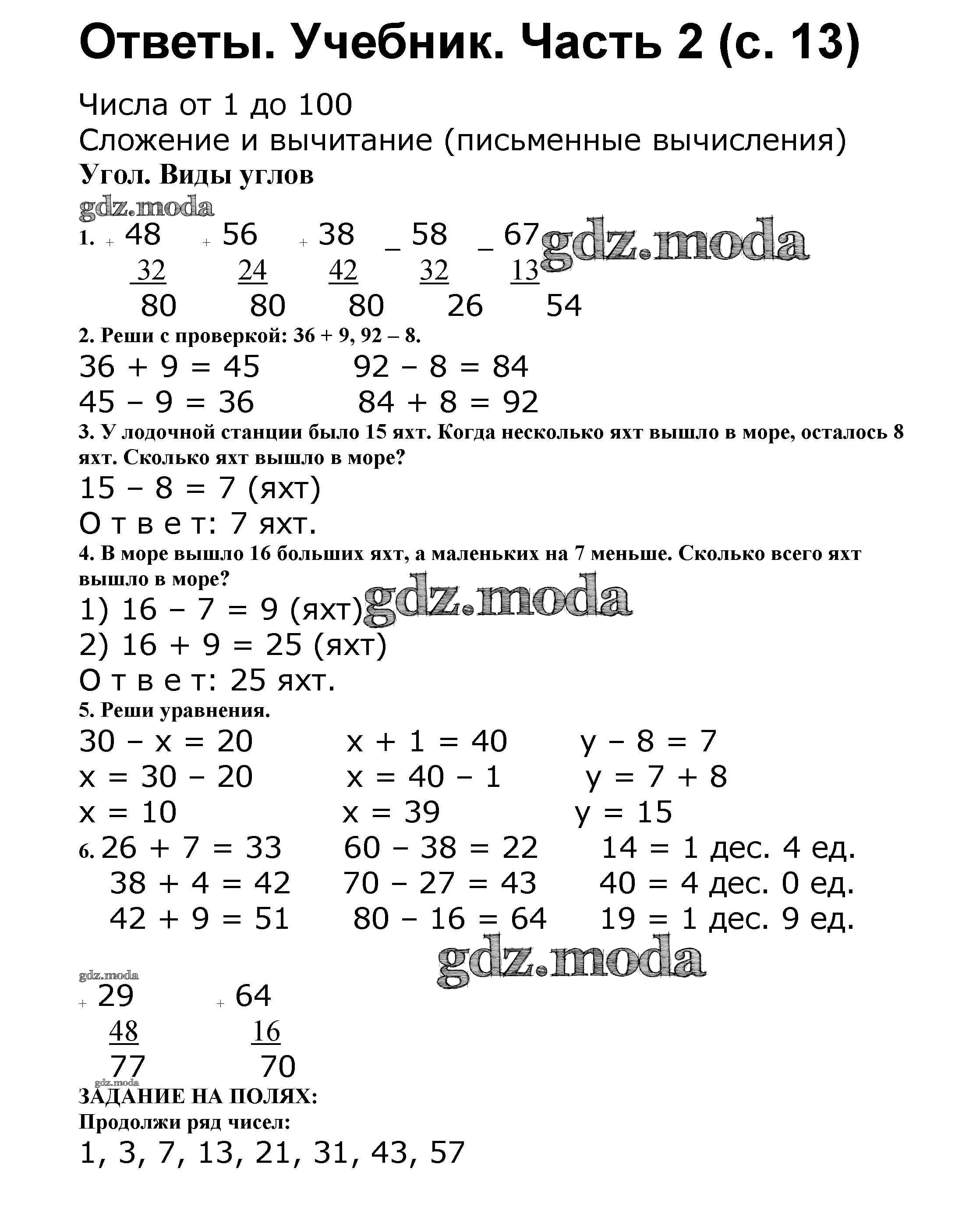 ОТВЕТ на задание № 13 Учебник по Математике 2 класс Моро Школа России