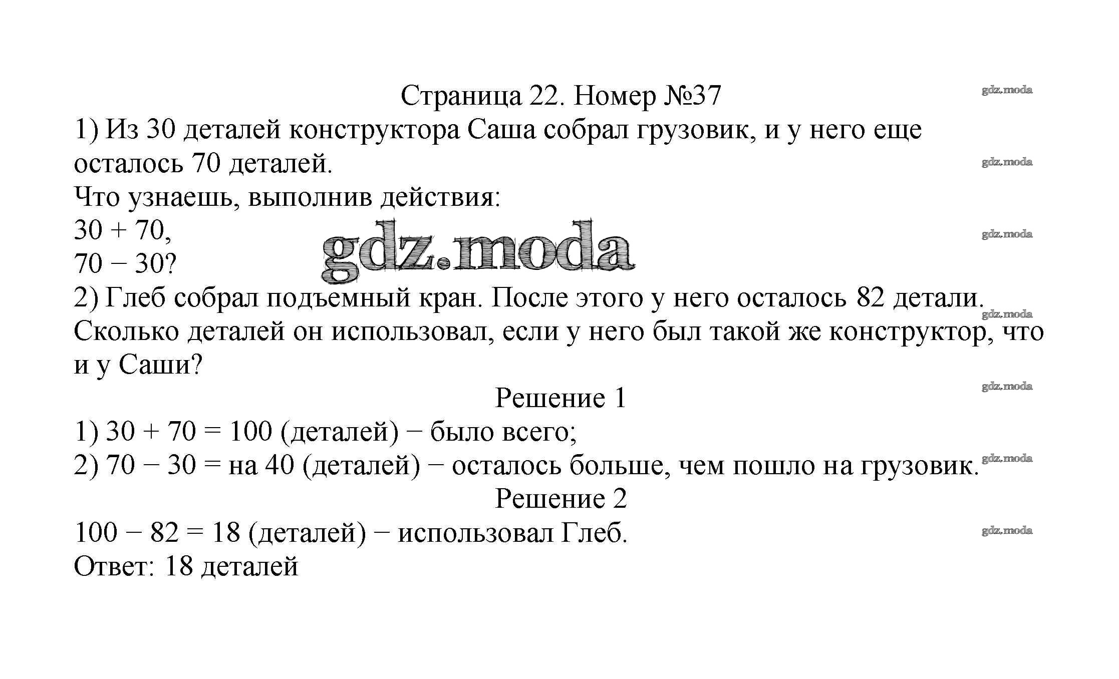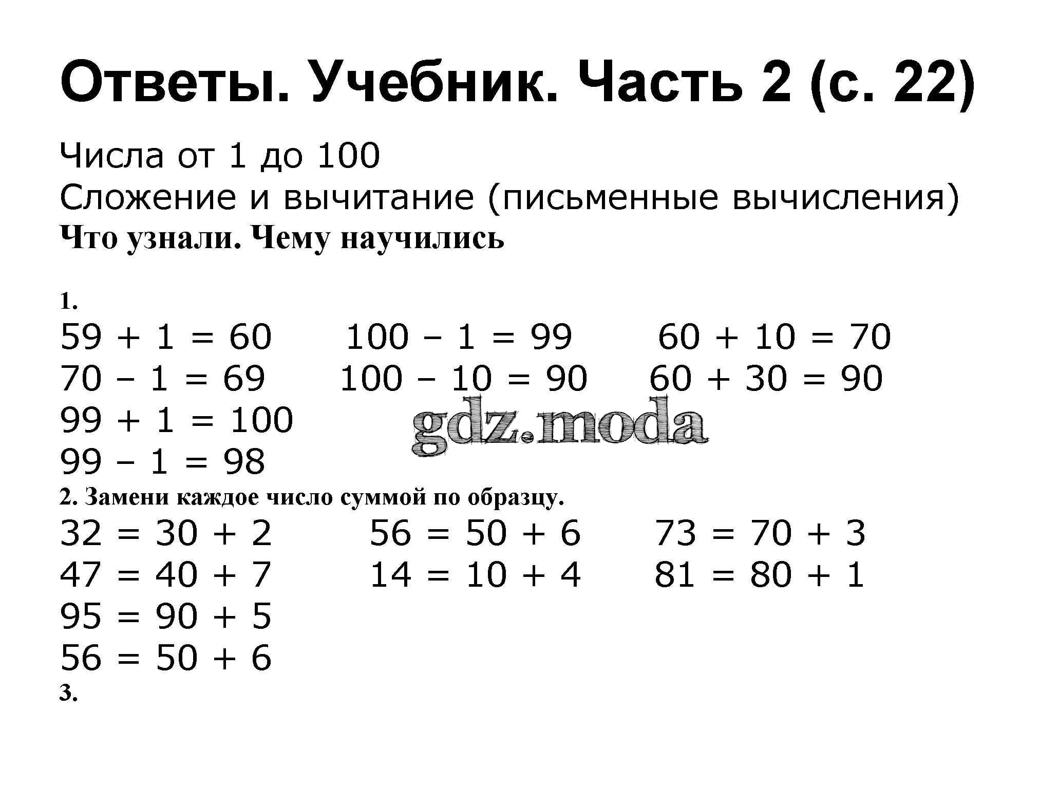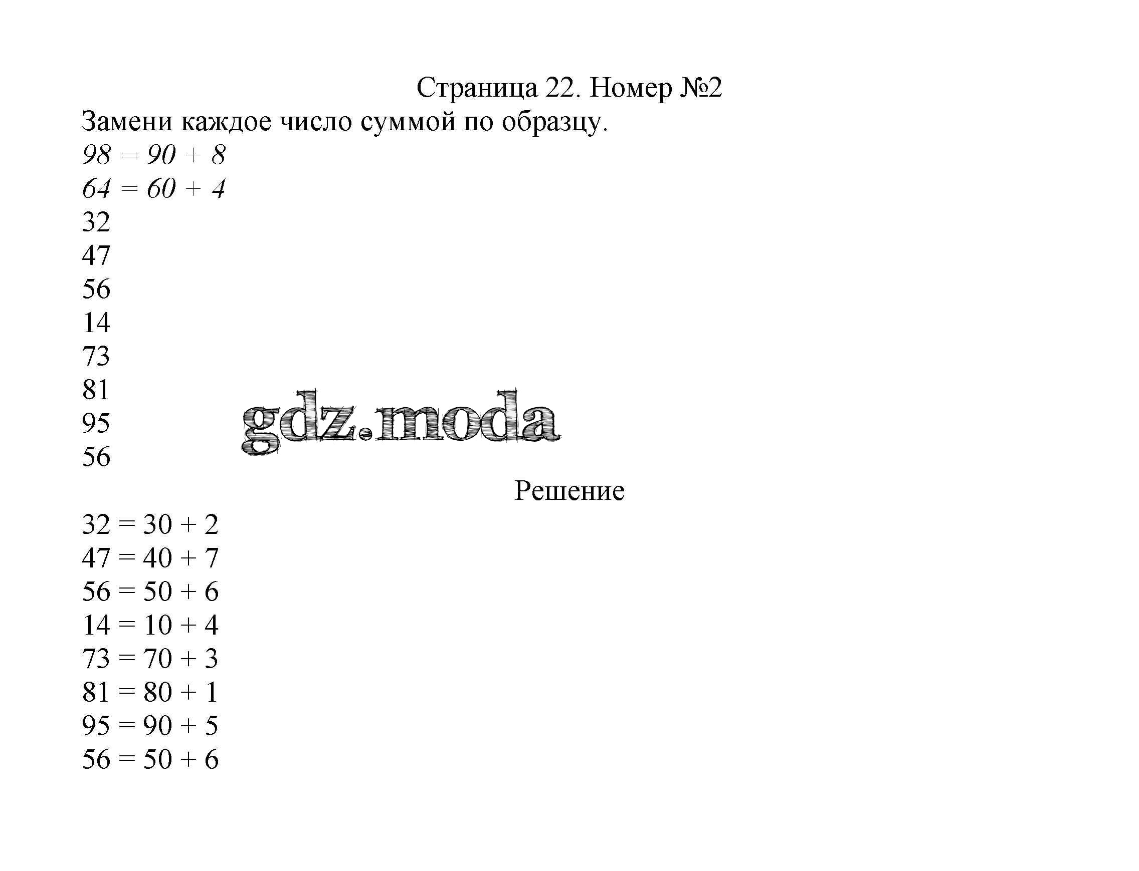 ОТВЕТ на задание № 22 Учебник по Математике 2 класс Моро Школа России