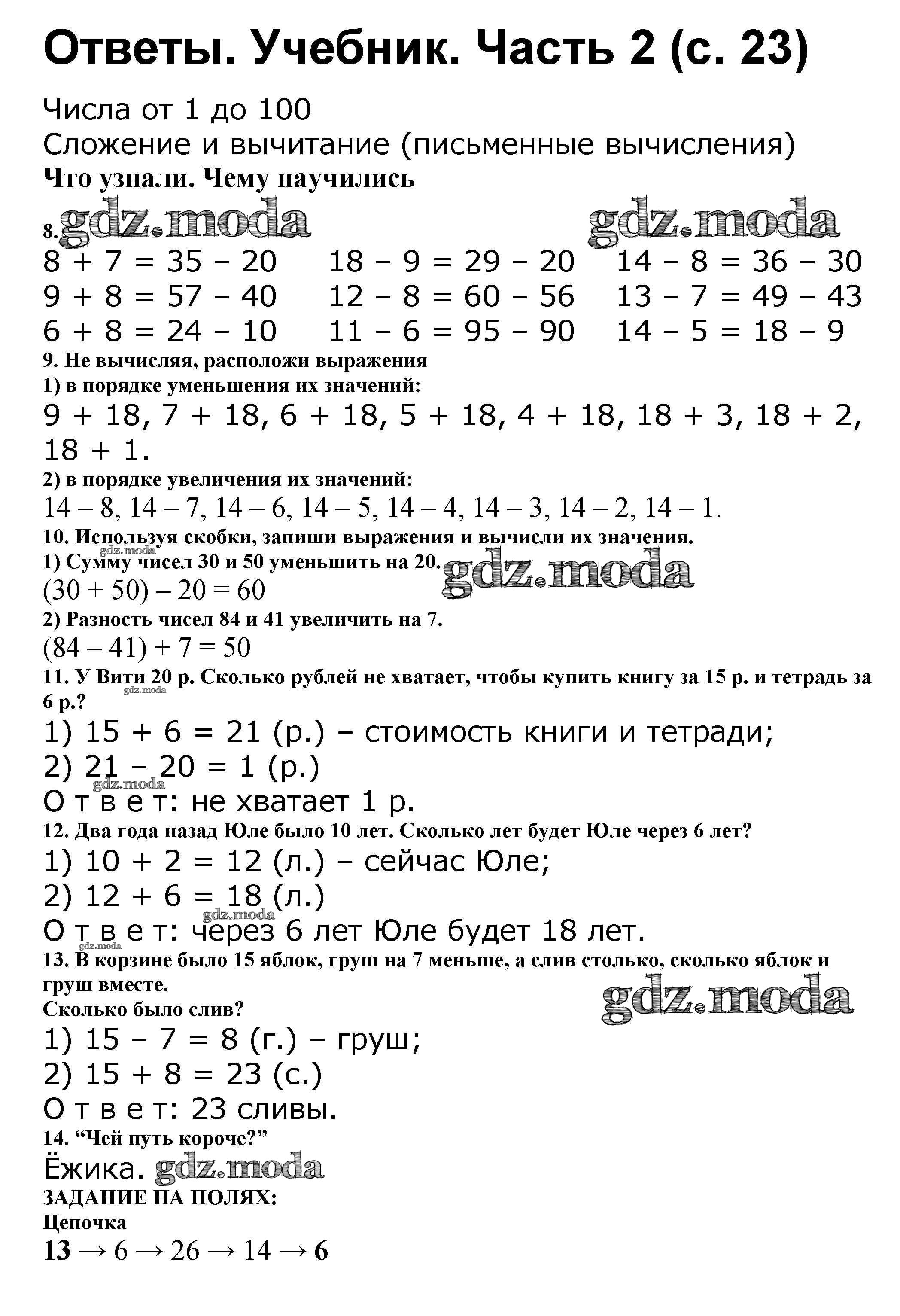 ОТВЕТ на задание № 23 Учебник по Математике 2 класс Моро Школа России