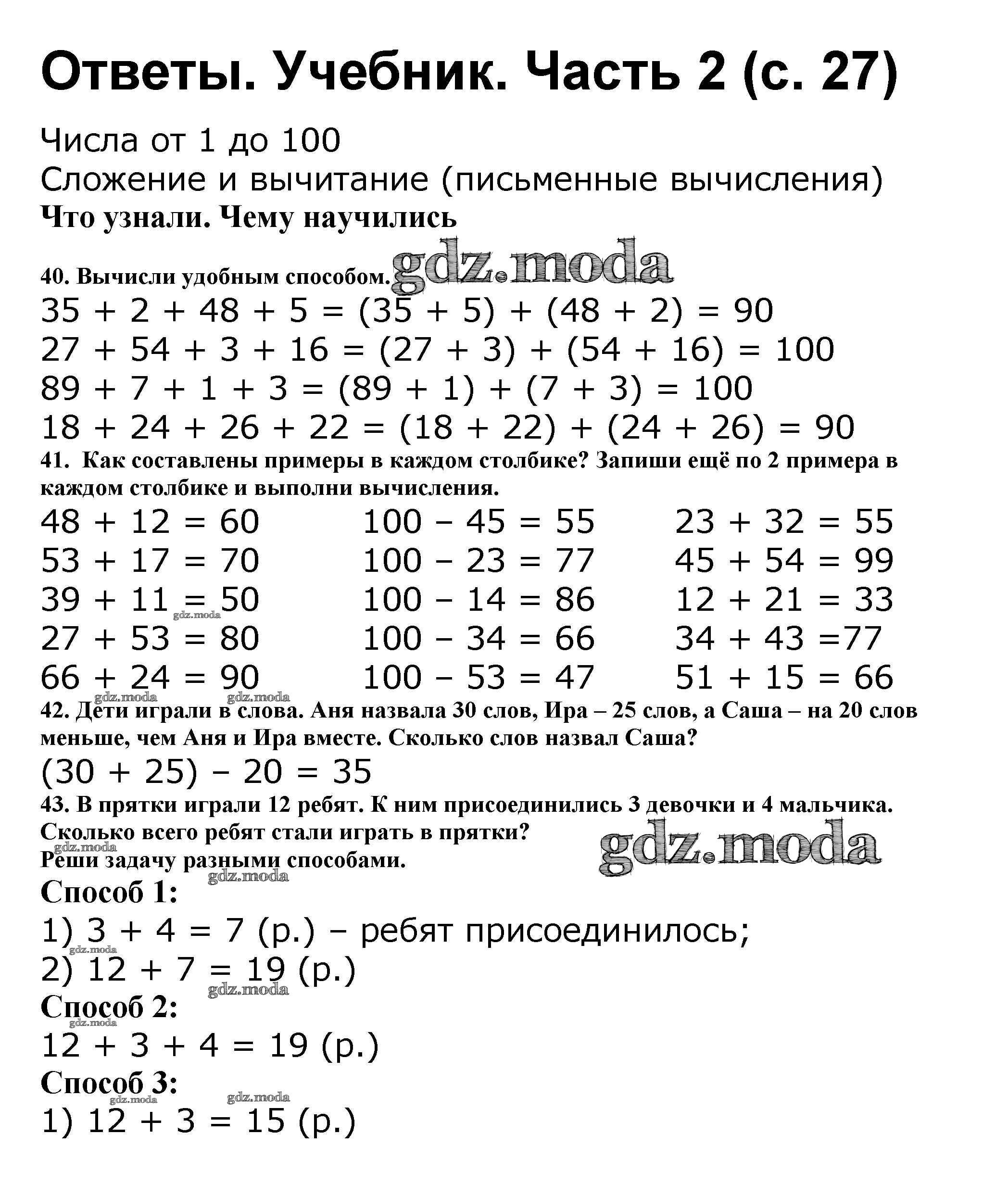 ОТВЕТ на задание № 27 Учебник по Математике 2 класс Моро Школа России