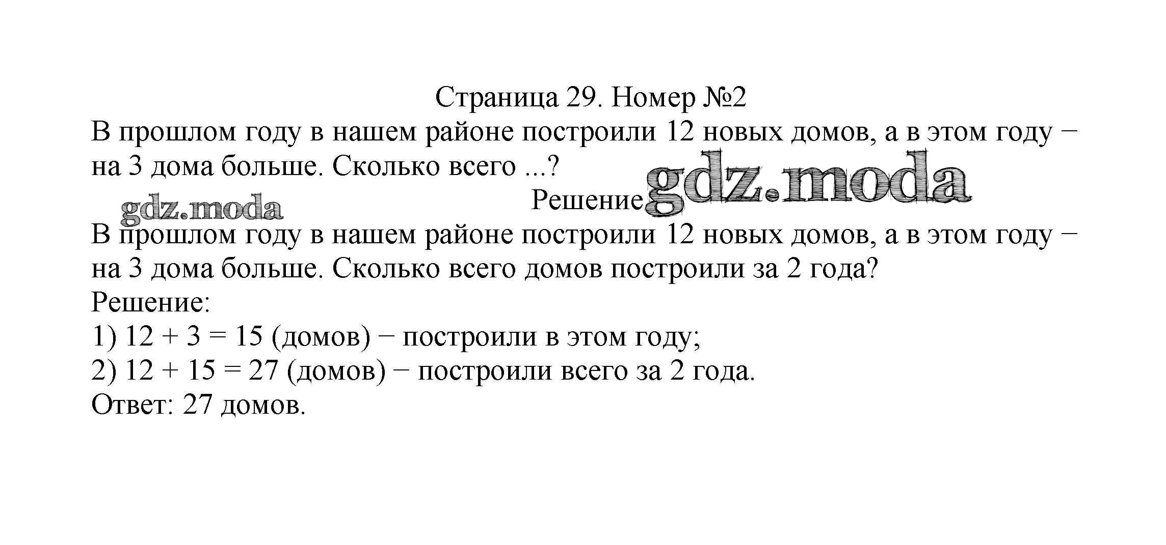 ОТВЕТ на задание № 29 Учебник по Математике 2 класс Моро Школа России