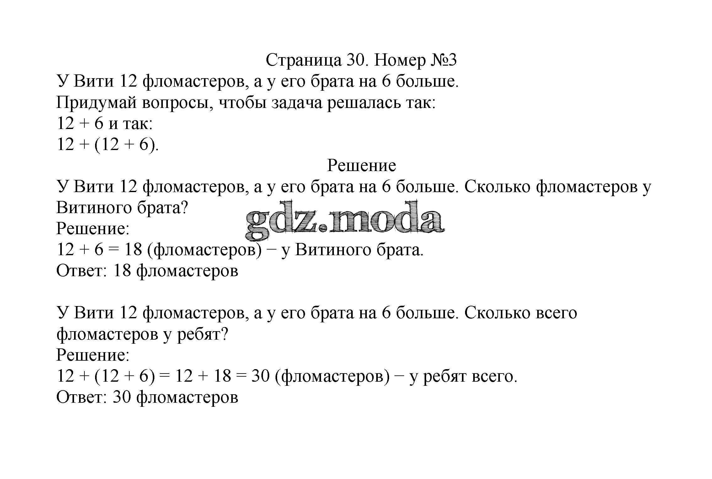 ОТВЕТ на задание № 30 Учебник по Математике 2 класс Моро Школа России