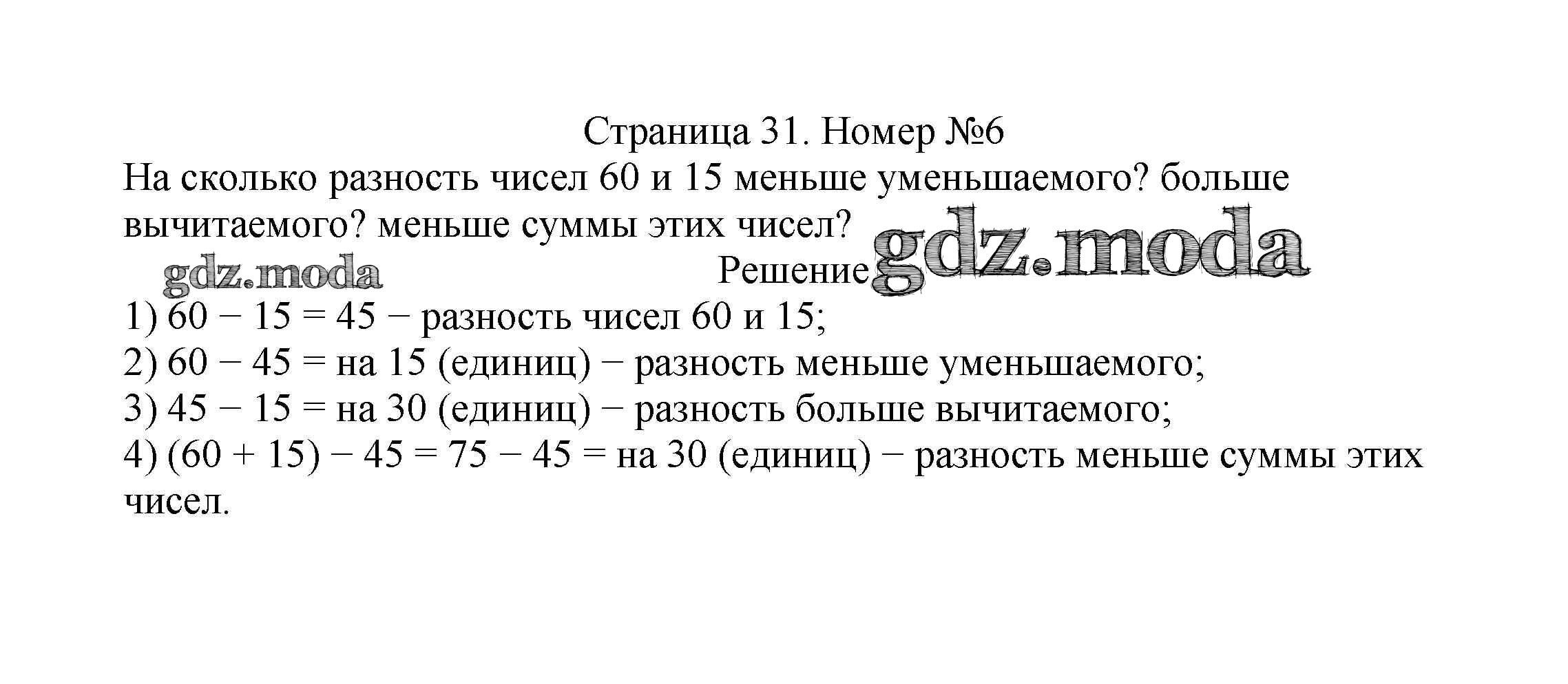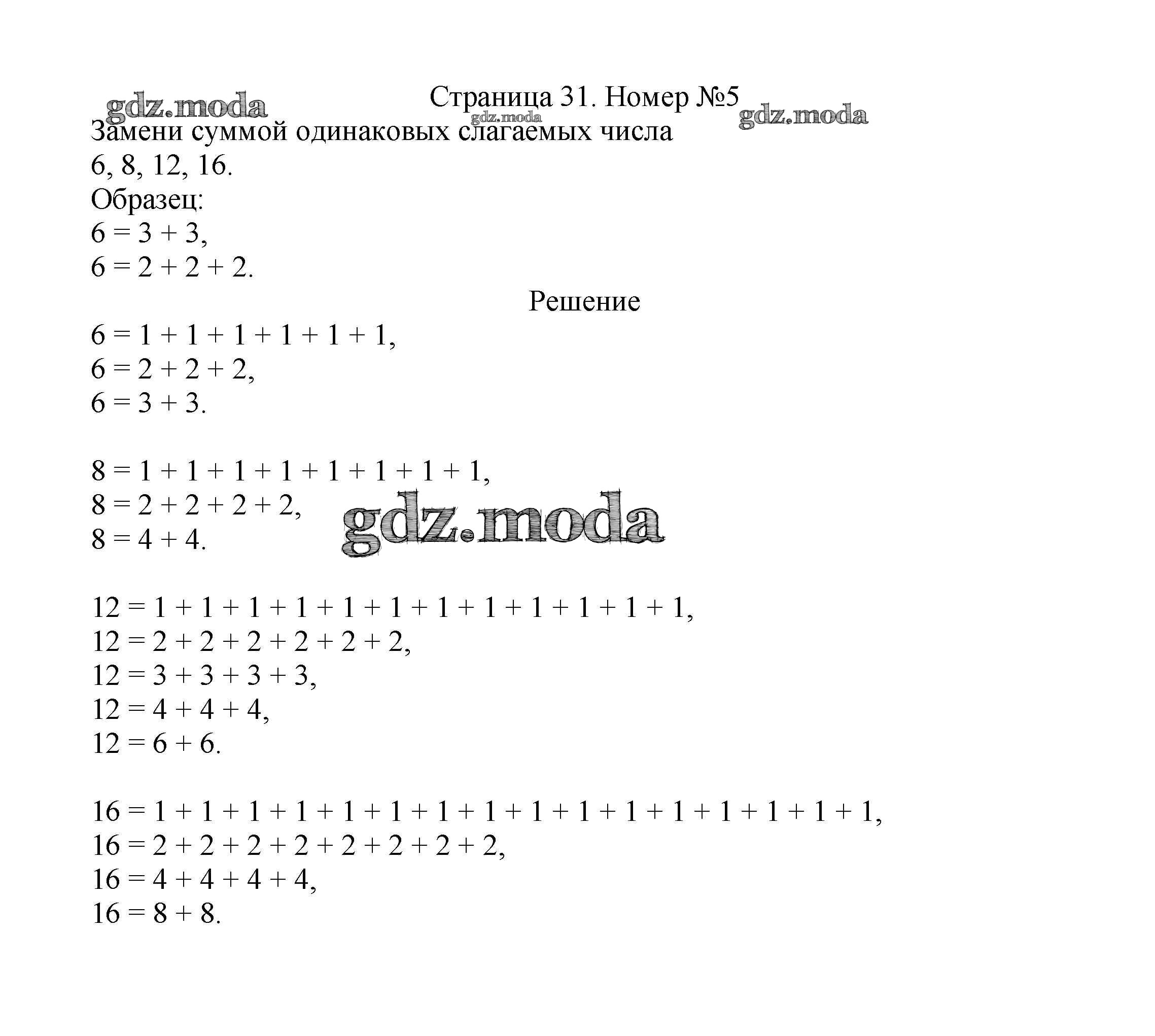ОТВЕТ на задание № 31 Учебник по Математике 2 класс Моро Школа России