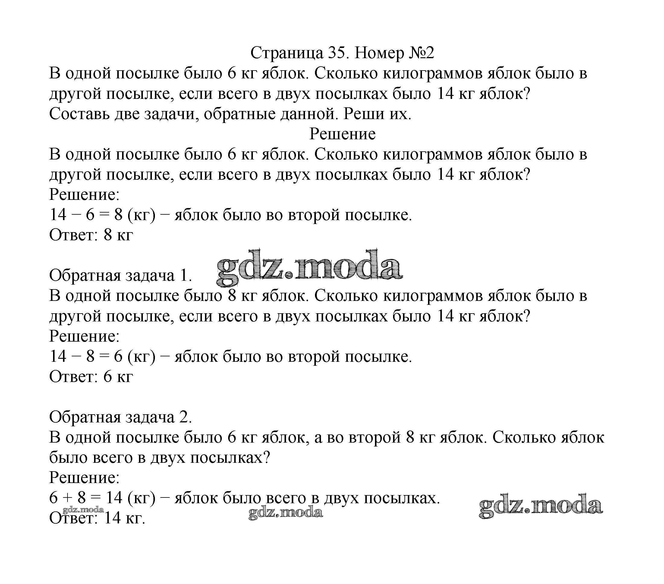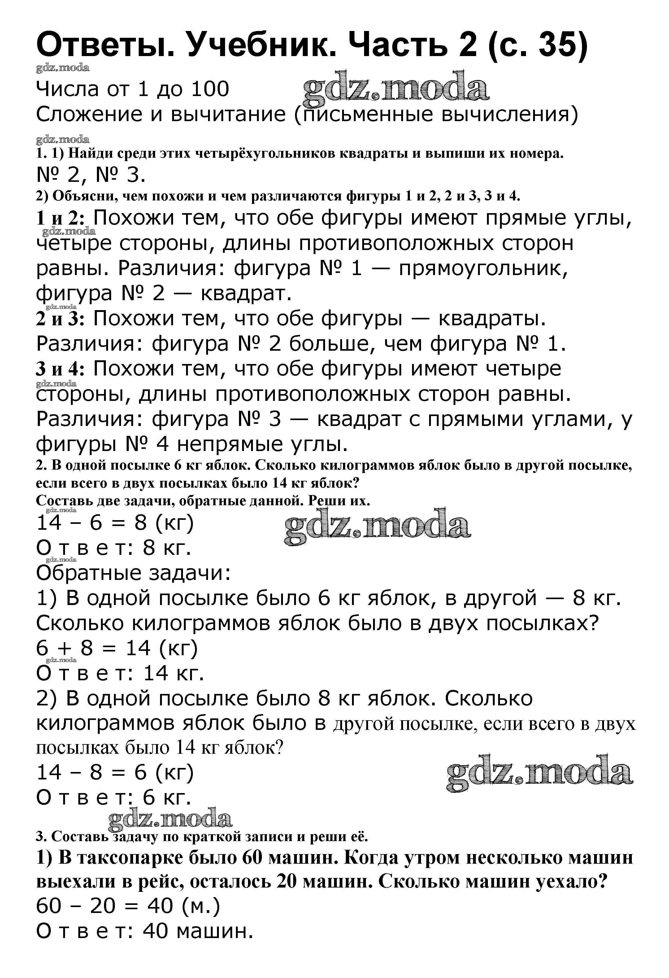 ОТВЕТ на задание № 35 Учебник по Математике 2 класс Моро Школа России
