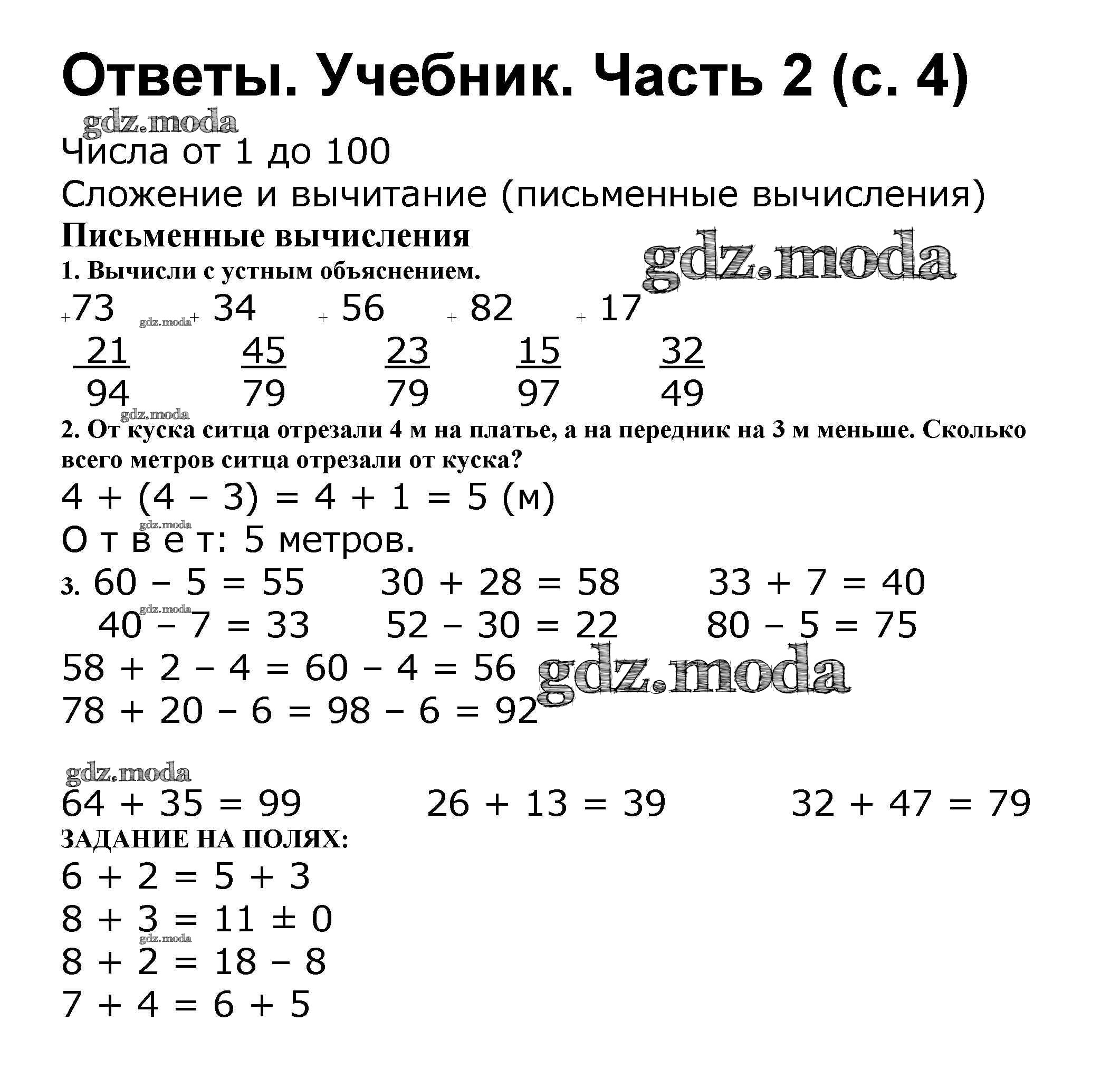 ОТВЕТ на задание № 4 Учебник по Математике 2 класс Моро Школа России