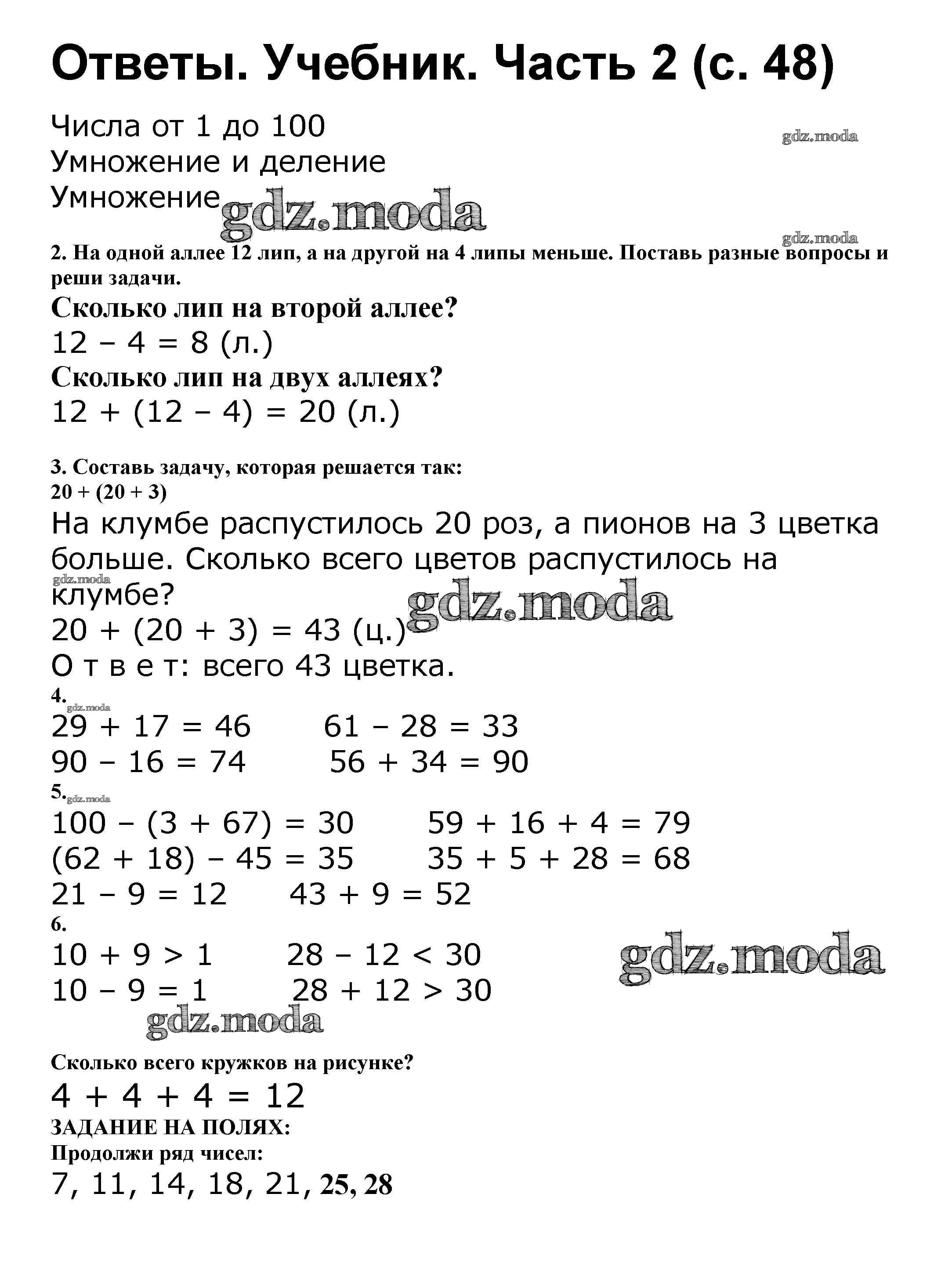 ОТВЕТ на задание № 48 Учебник по Математике 2 класс Моро Школа России