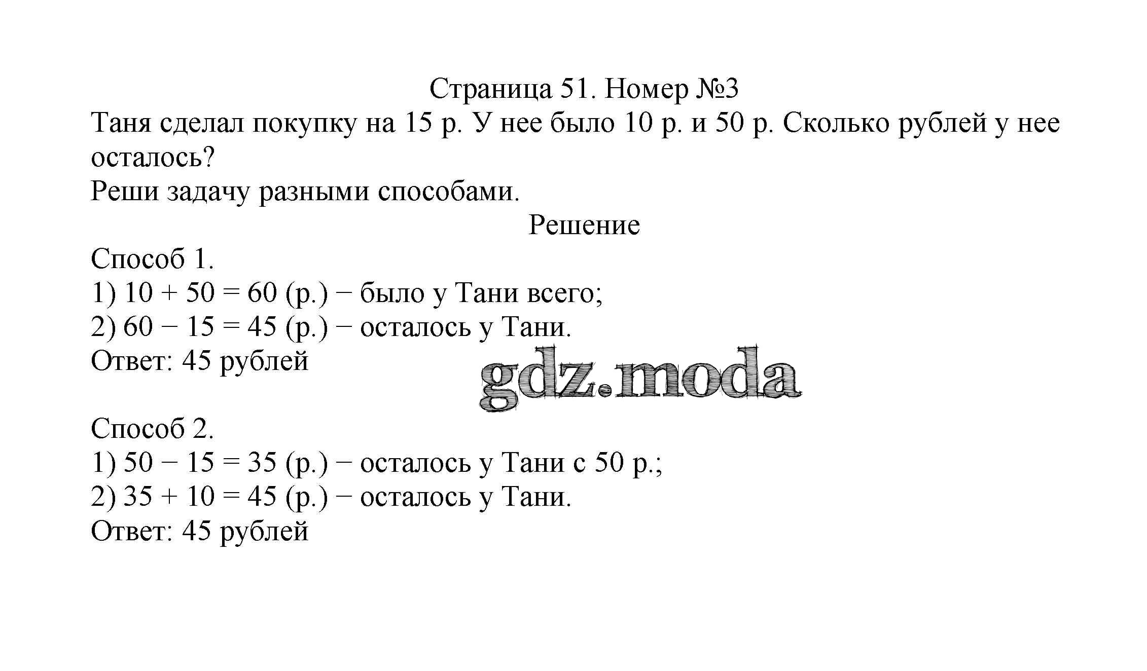 ОТВЕТ на задание № 51 Учебник по Математике 2 класс Моро Школа России