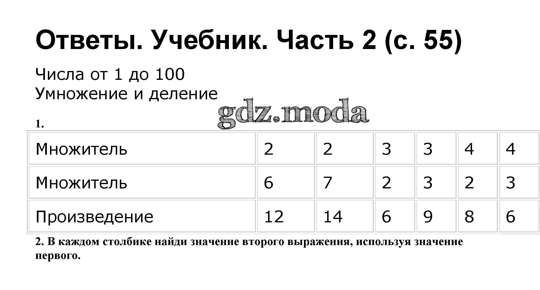 ОТВЕТ на задание № 55 Учебник по Математике 2 класс Моро Школа России