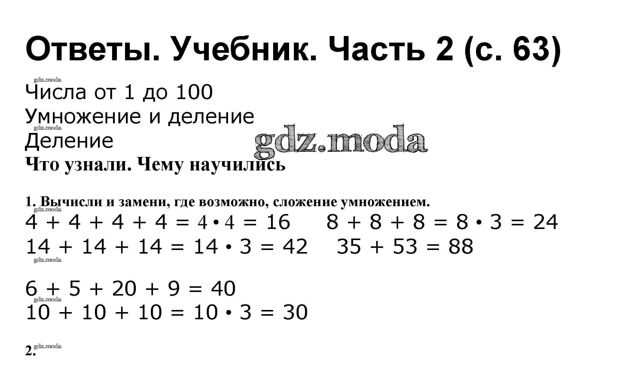 ОТВЕТ на задание № 63 Учебник по Математике 2 класс Моро Школа России