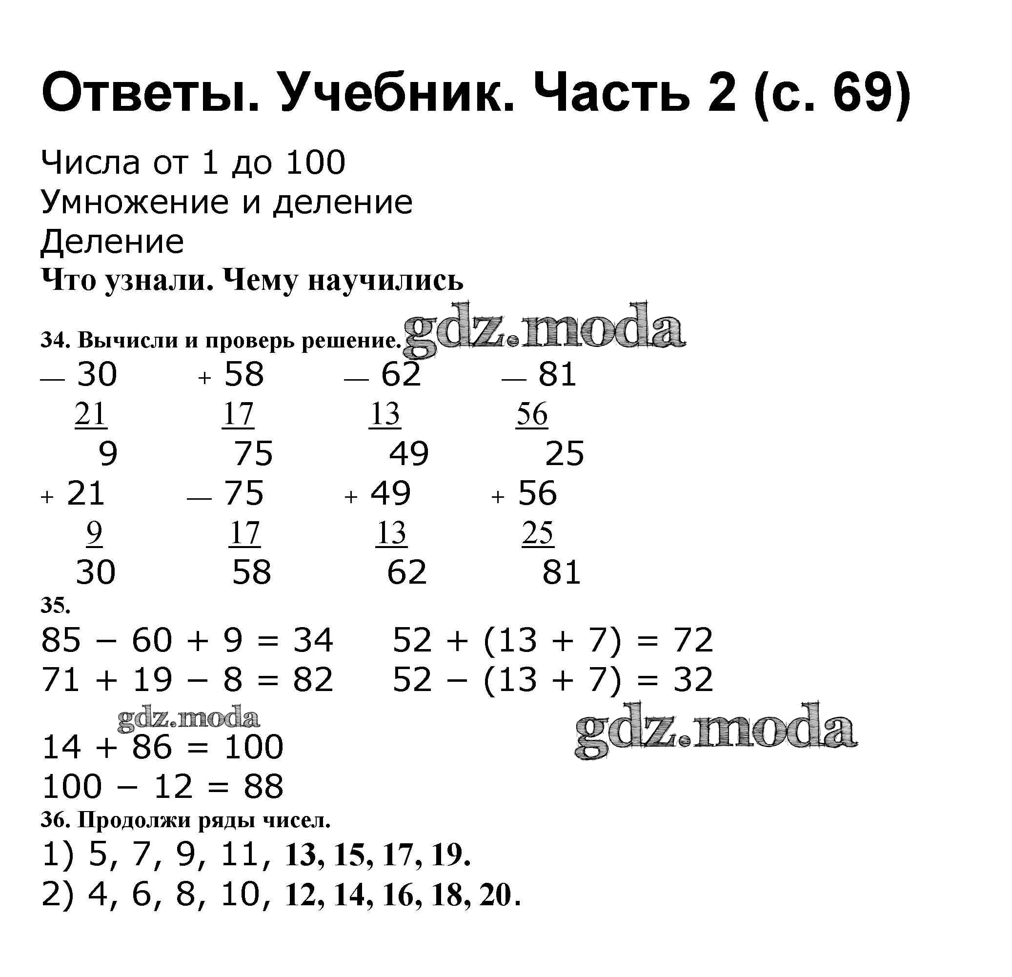 ОТВЕТ на задание № 69 Учебник по Математике 2 класс Моро Школа России