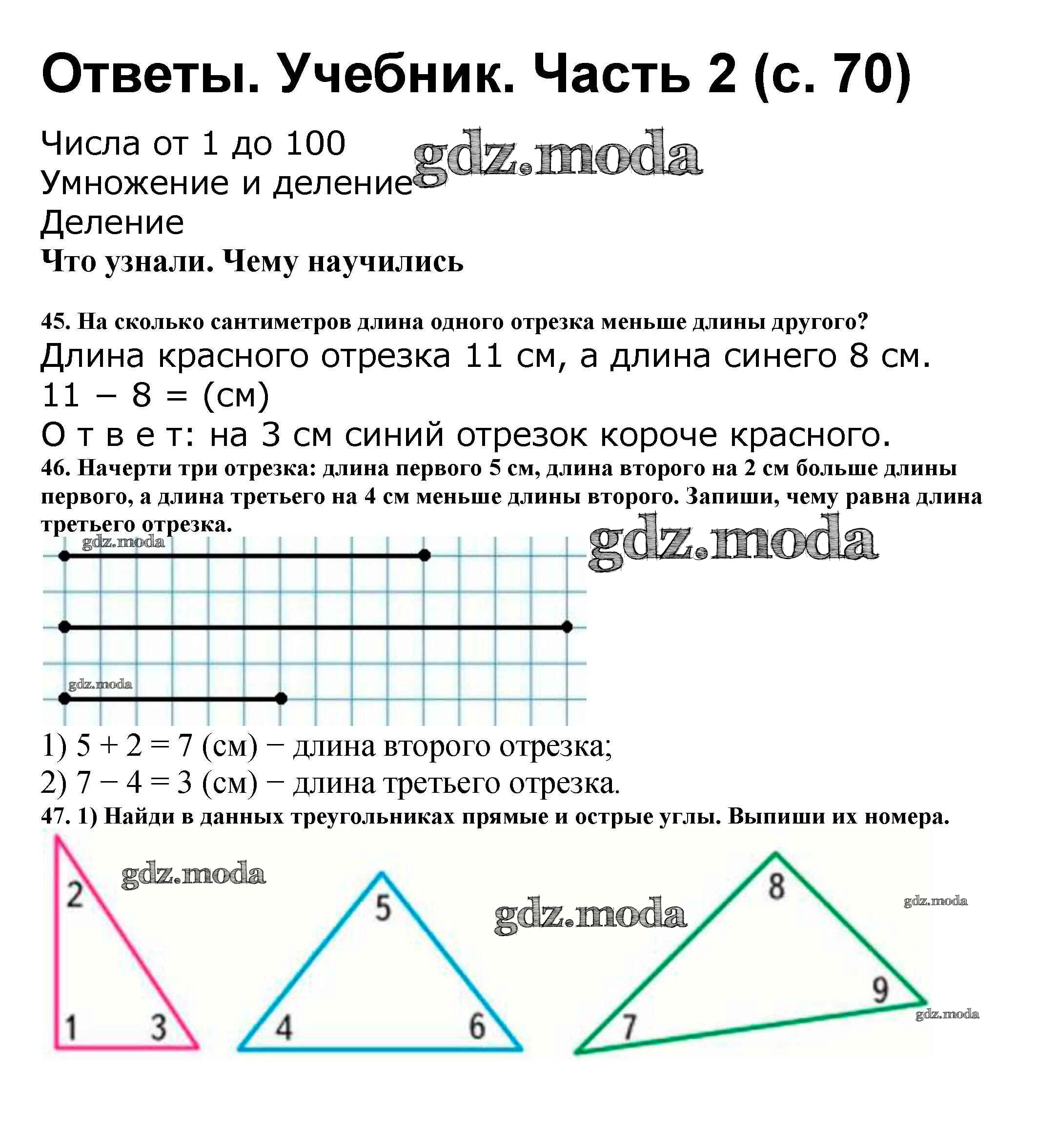 ОТВЕТ на задание № 70 Учебник по Математике 2 класс Моро Школа России