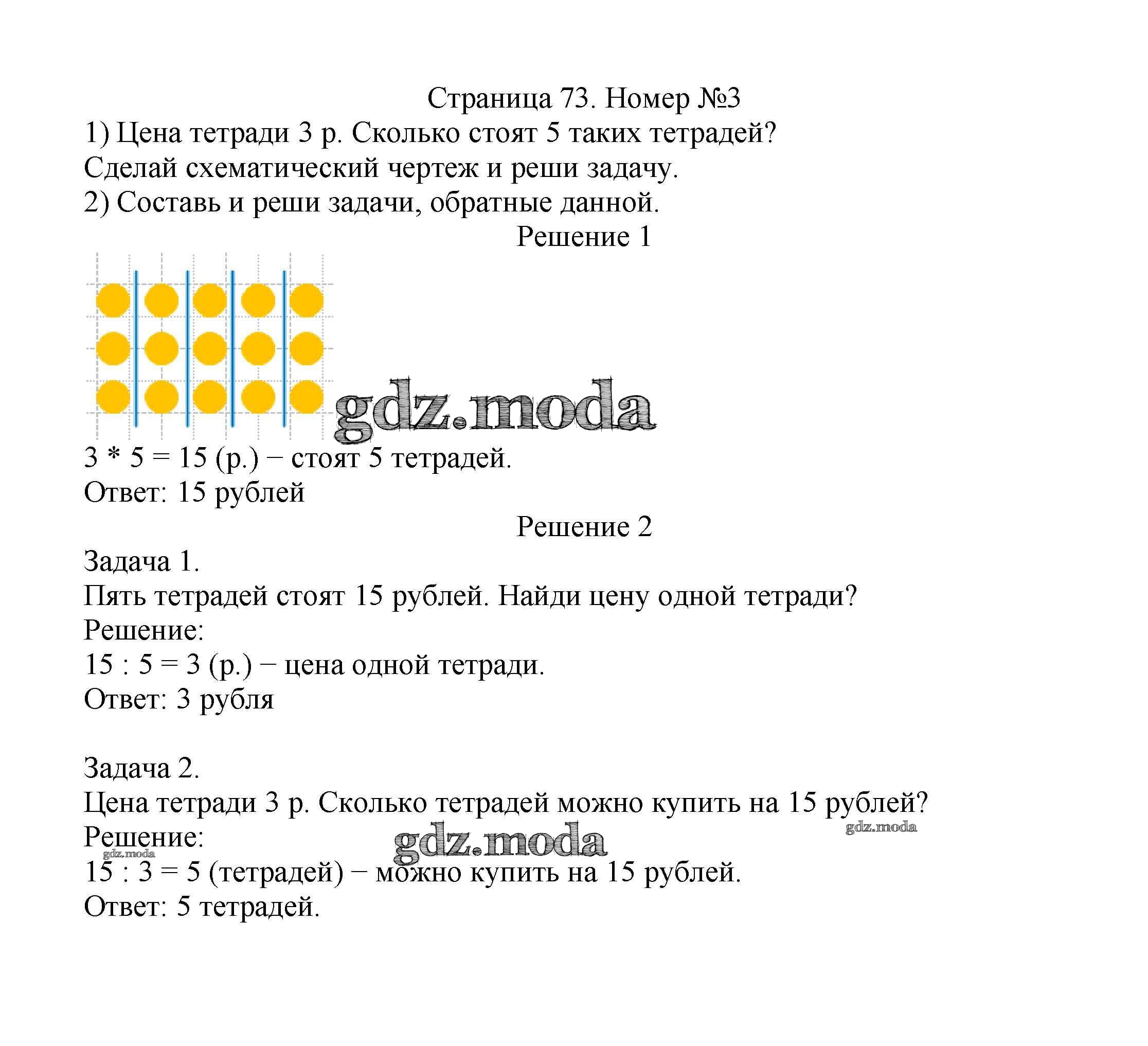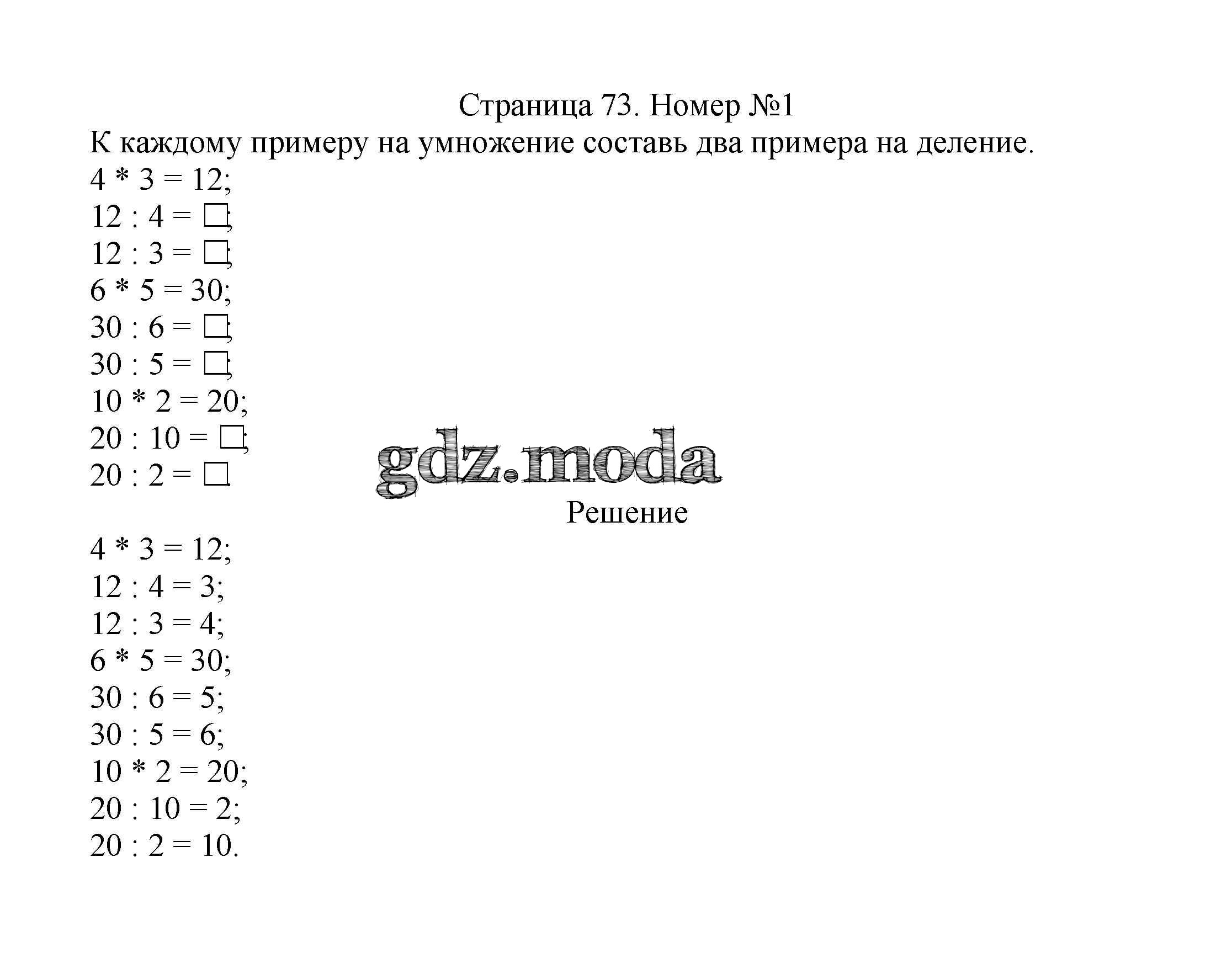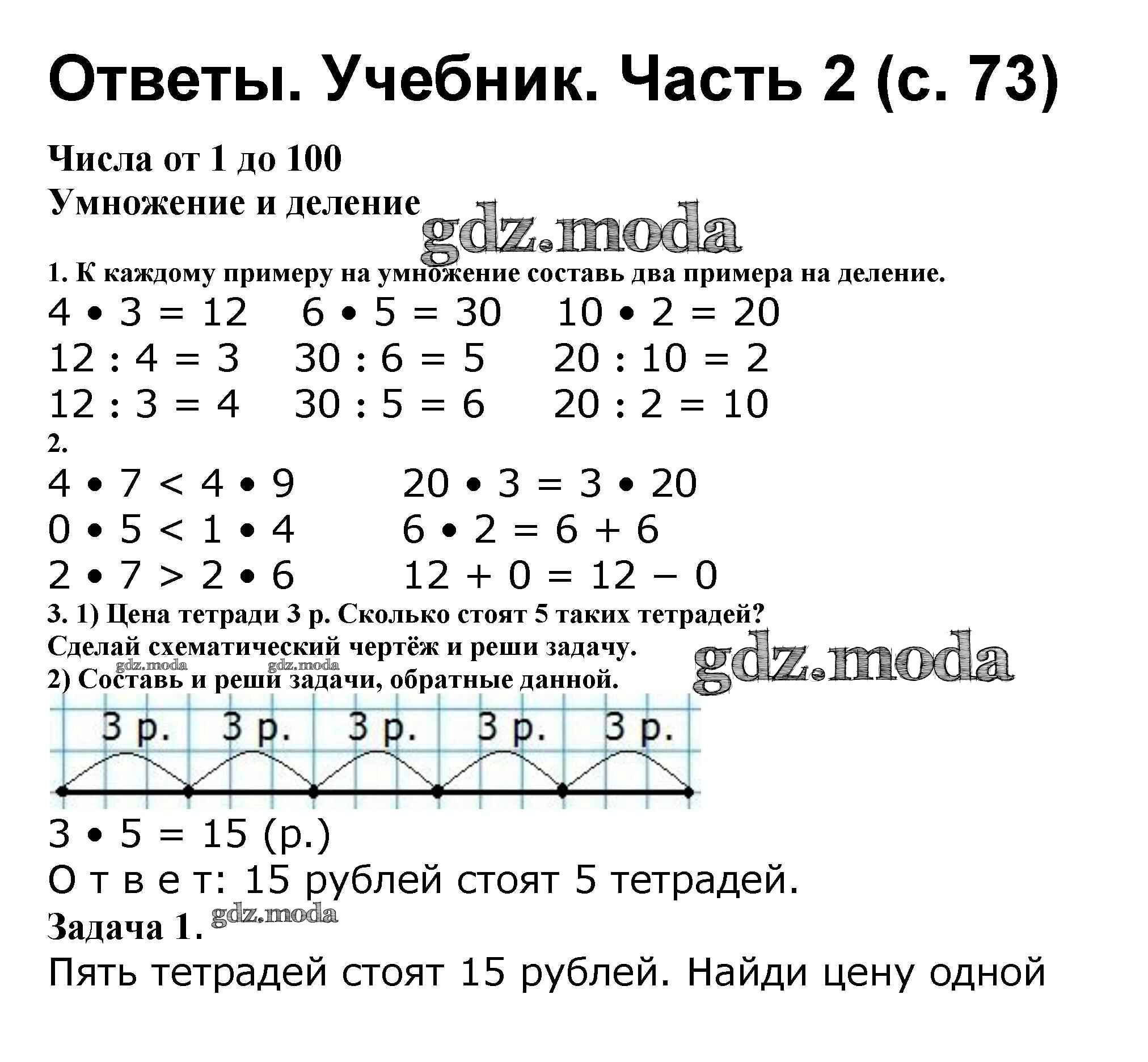 ОТВЕТ на задание № 73 Учебник по Математике 2 класс Моро Школа России