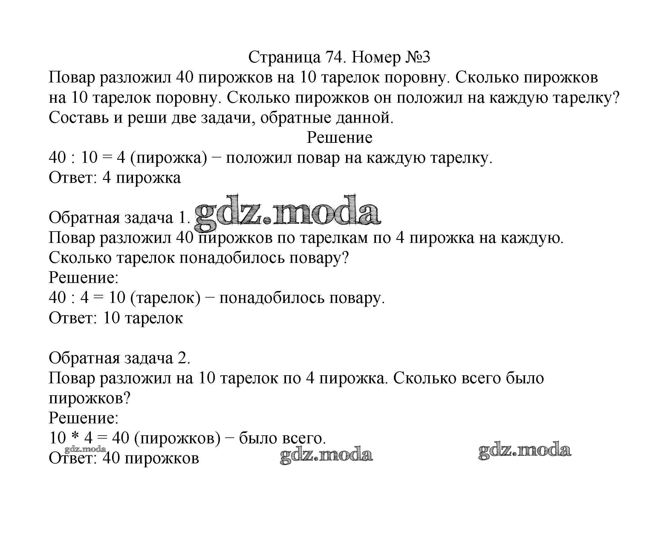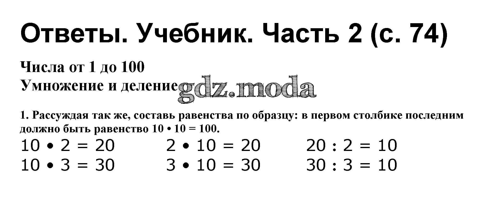 ОТВЕТ на задание № 74 Учебник по Математике 2 класс Моро Школа России
