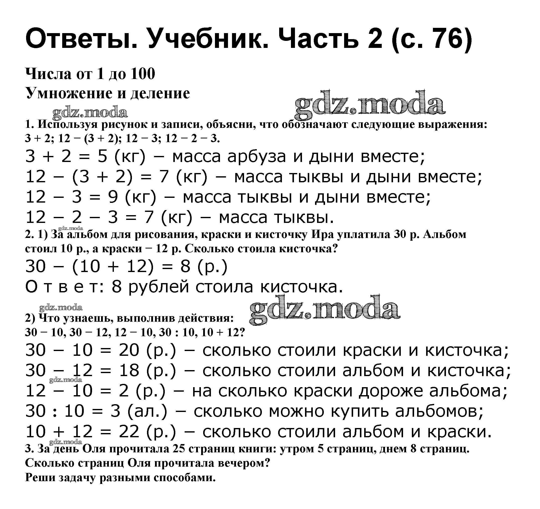 ОТВЕТ на задание № 76 Учебник по Математике 2 класс Моро Школа России