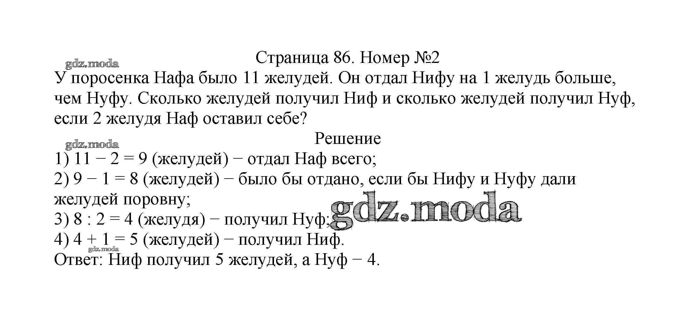 ОТВЕТ на задание № 86 Учебник по Математике 2 класс Моро Школа России