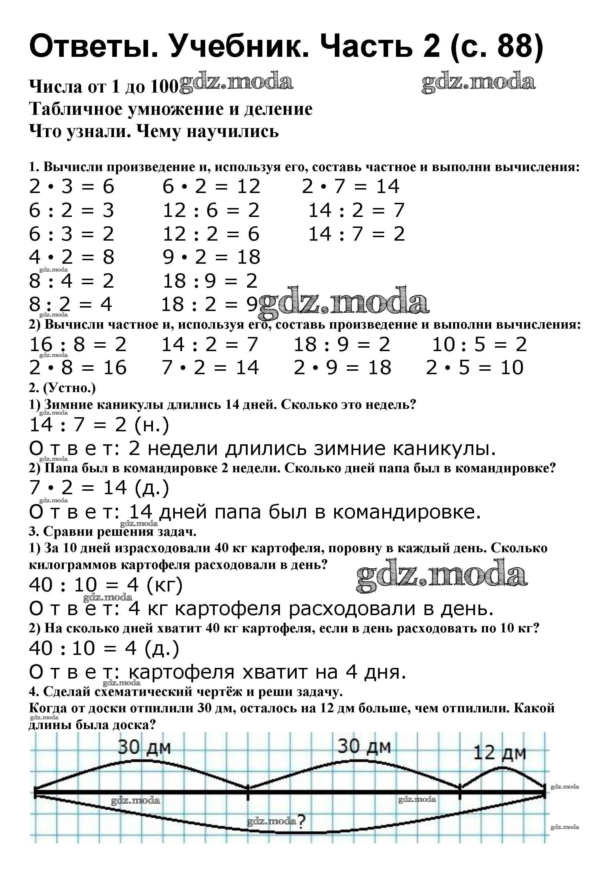 ОТВЕТ на задание № 88 Учебник по Математике 2 класс Моро Школа России