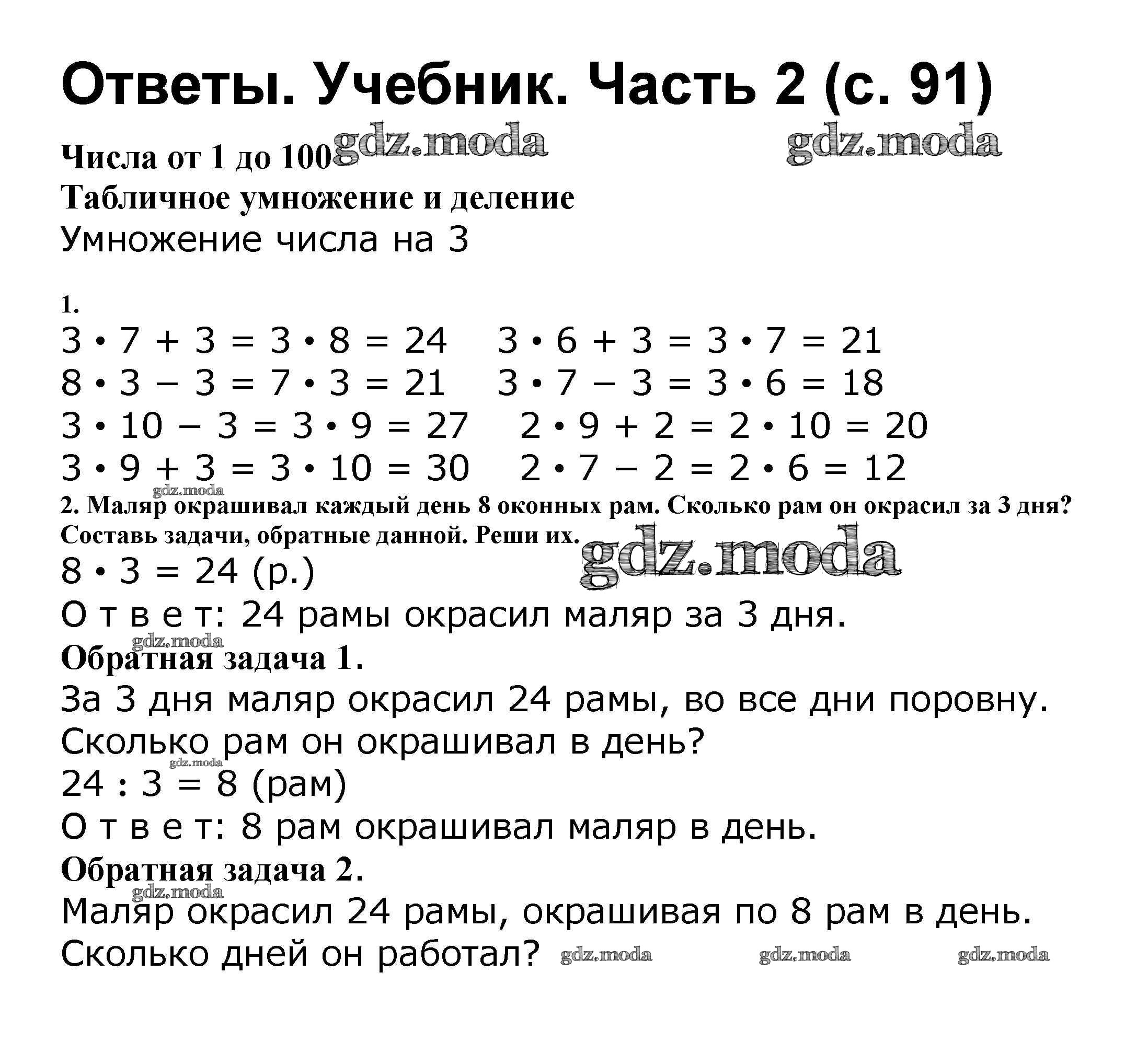 ОТВЕТ на задание № 91 Учебник по Математике 2 класс Моро Школа России