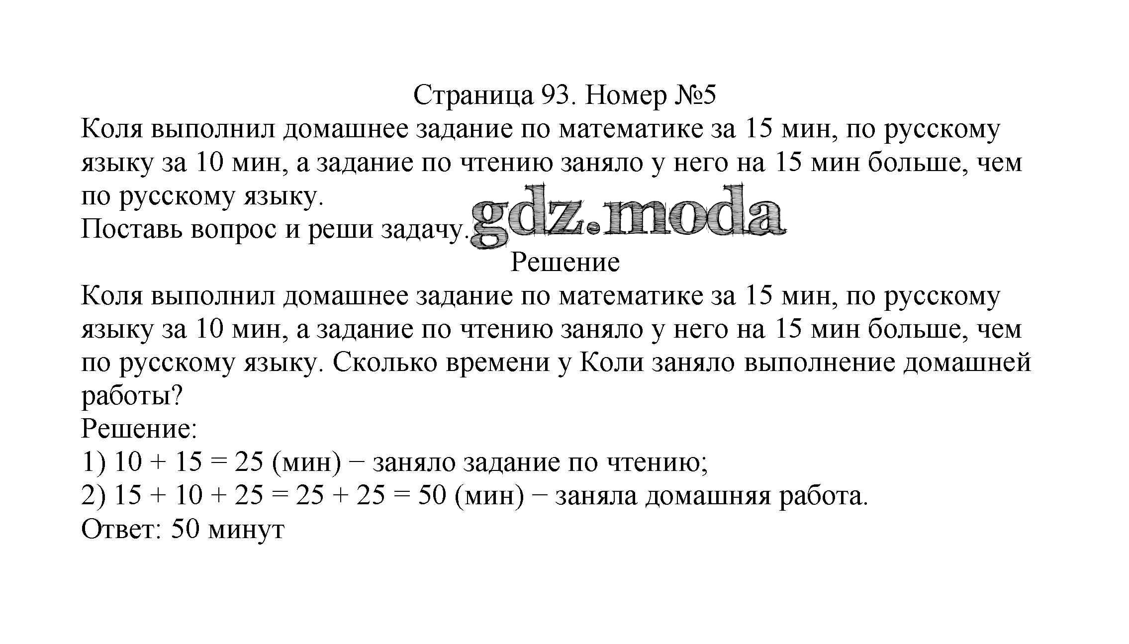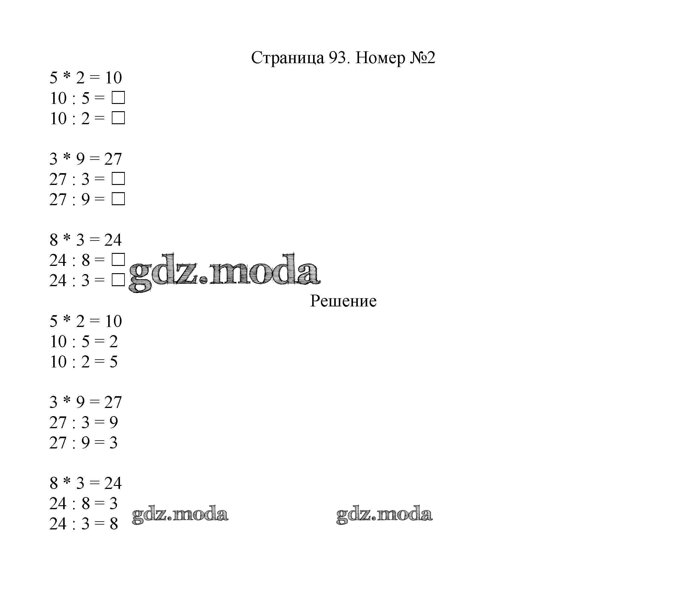 ОТВЕТ на задание № 93 Учебник по Математике 2 класс Моро Школа России