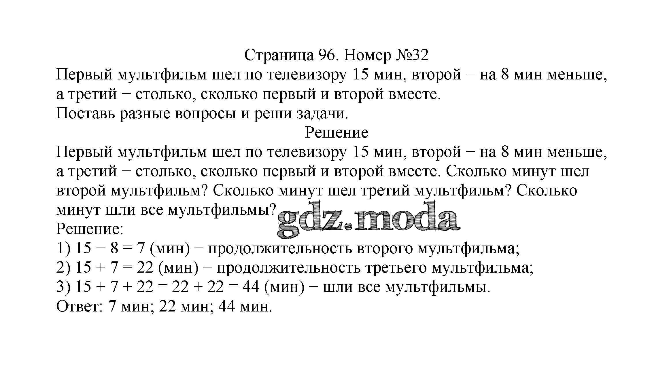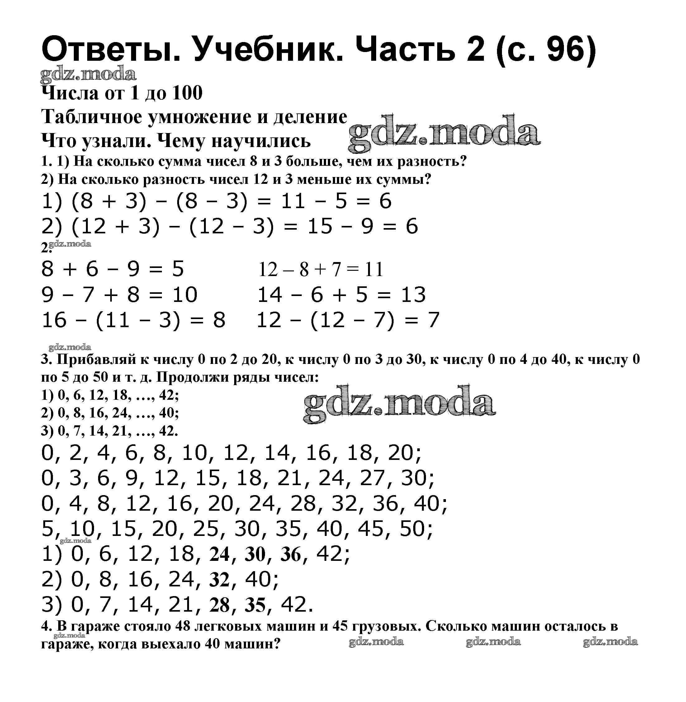 ОТВЕТ на задание № 96 Учебник по Математике 2 класс Моро Школа России