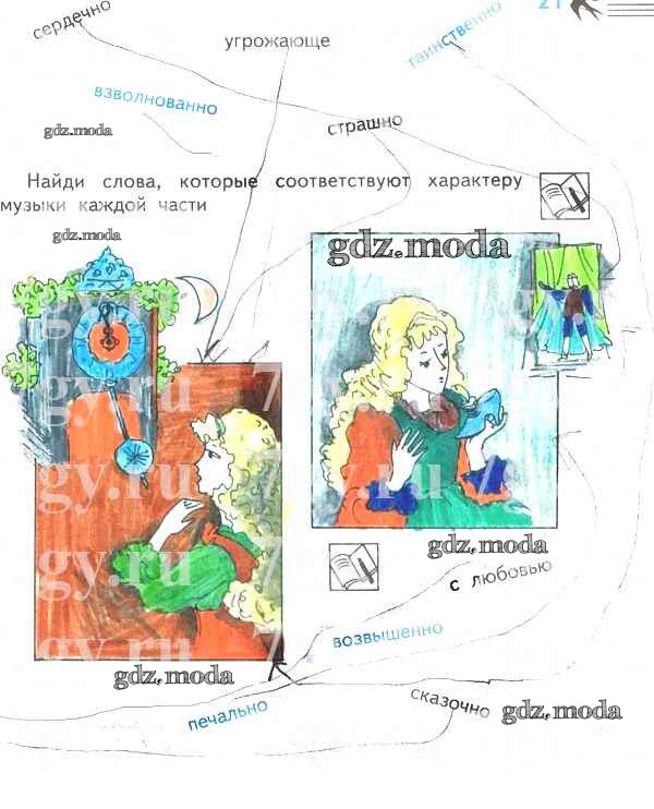 ГДЗ решение к заданию № 21 Музыка 2 класс рабочая тетрадь Критская Е.Д. Просвещение 2018 ФГОС бесплатно на гдз.мода!