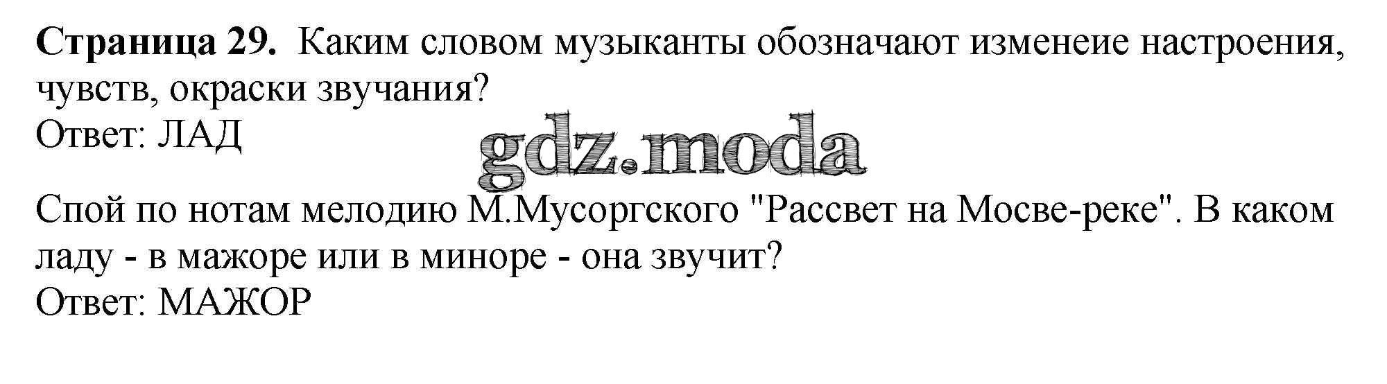 ГДЗ решение к заданию № 29 Музыка 2 класс рабочая тетрадь Критская Е.Д. Просвещение 2018 ФГОС бесплатно на гдз.мода!