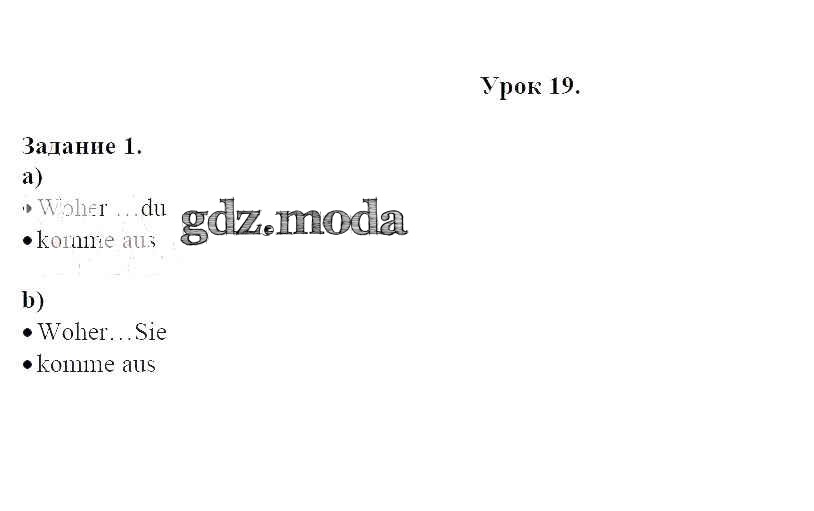 ГДЗ решение к заданию № Урок 19 Немецкий язык 2 класс рабочая тетрадь Бим И.Л. Просвещение 2016 Часть 1, Часть 2 ФГОС бесплатно на гдз.мода!