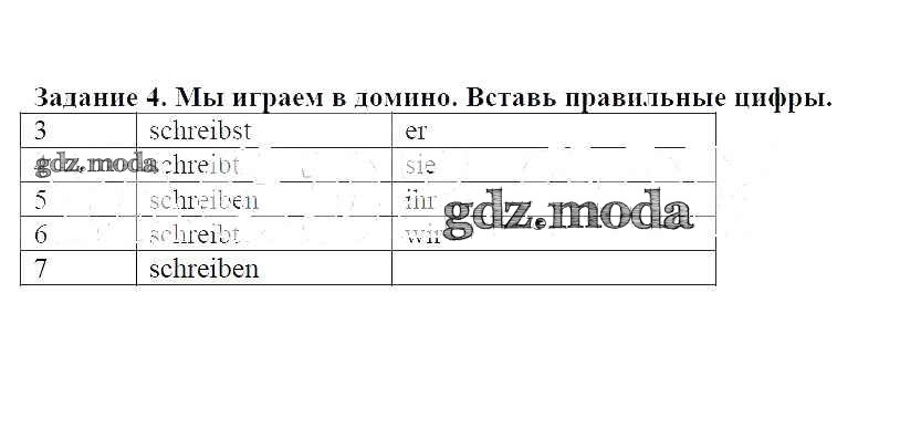 ГДЗ решение к заданию № 4 Немецкий язык 2 класс рабочая тетрадь Бим И.Л. Просвещение 2016 Часть 1, Часть 2 ФГОС бесплатно на гдз.мода!