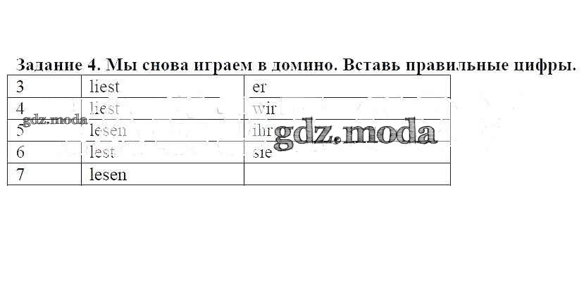 ГДЗ решение к заданию № 4 Немецкий язык 2 класс рабочая тетрадь Бим И.Л. Просвещение 2016 Часть 1, Часть 2 ФГОС бесплатно на гдз.мода!
