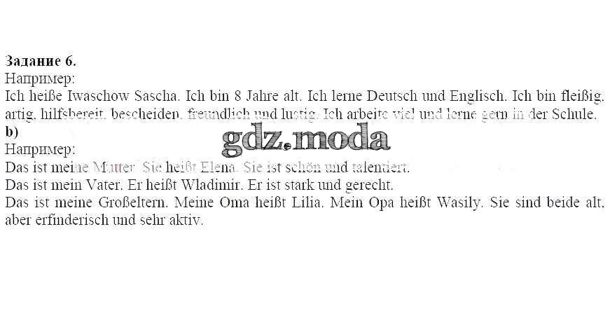 ГДЗ решение к заданию № 6 Немецкий язык 2 класс Бим И.Л. Просвещение 2014 Часть 1, Часть 2 ФГОС бесплатно на гдз.мода!