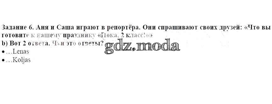 ОТВЕТ на задание № 6 Учебник по Немецкому языку 2 класс Бим