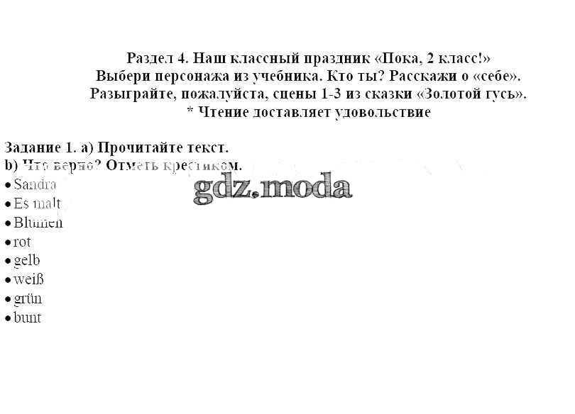 ОТВЕТ на задание № 1 Учебник по Немецкому языку 2 класс Бим