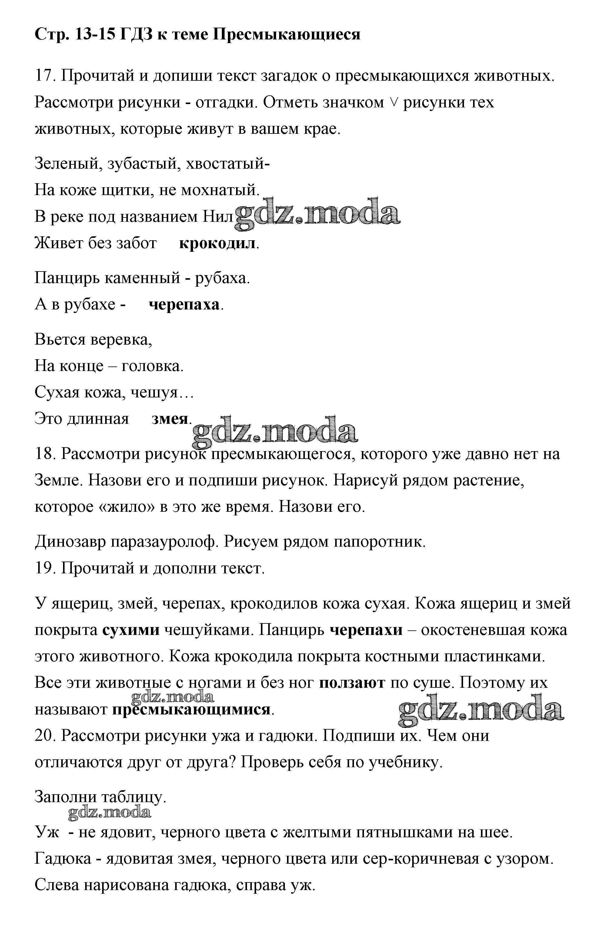 ОТВЕТ на задание № 13-15 Тетрадь для самостоятельной работы по Окружающему миру 2 класс Федотова Перспективная начальная школа