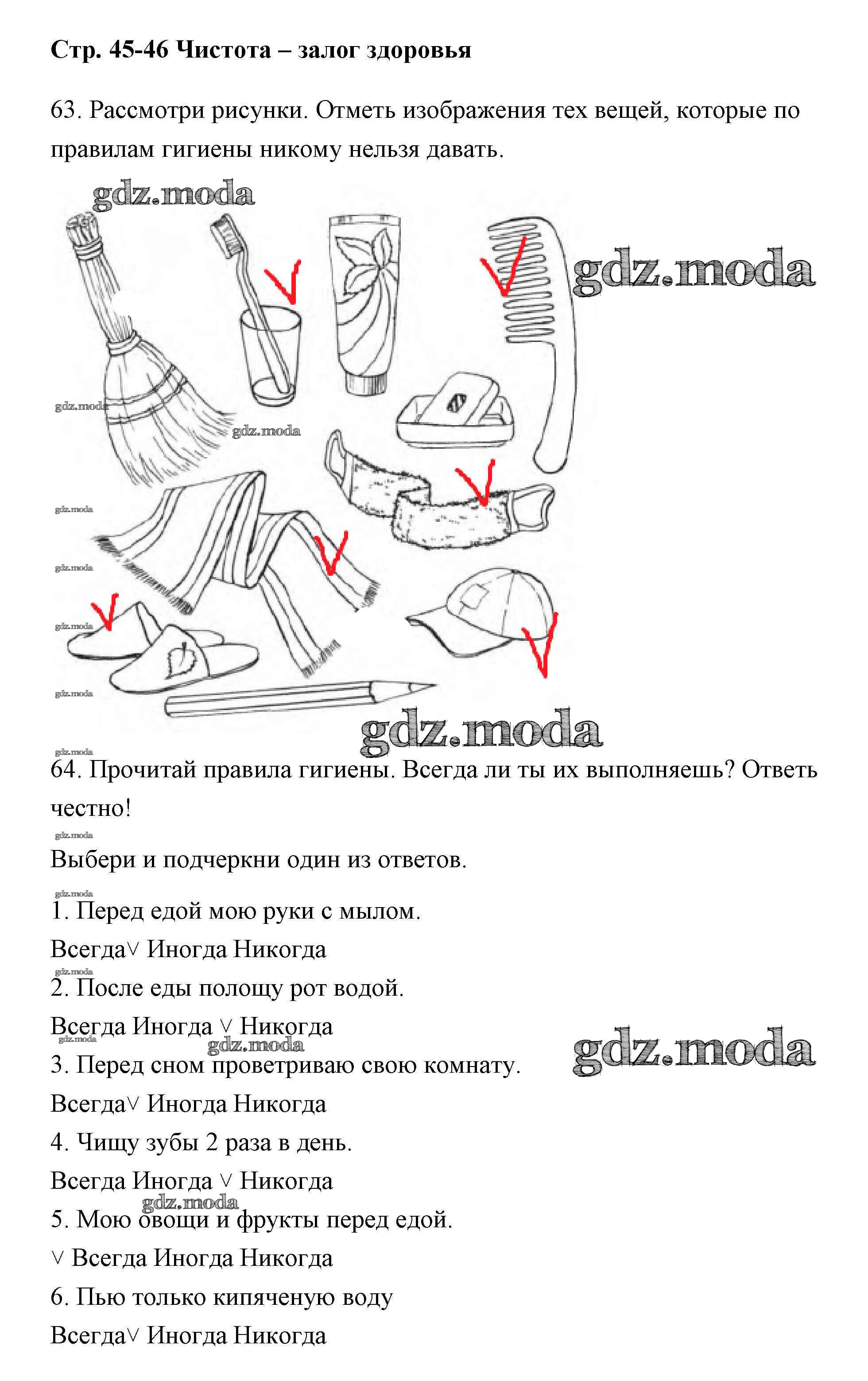 ГДЗ решение к заданию № 45-46 Окружающий мир 2 класс тетрадь для самостоятельной работы Федотова Академкнига 2017 Часть 2 ФГОС бесплатно на гдз.мода!